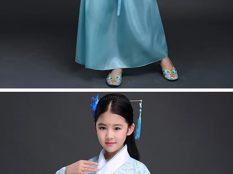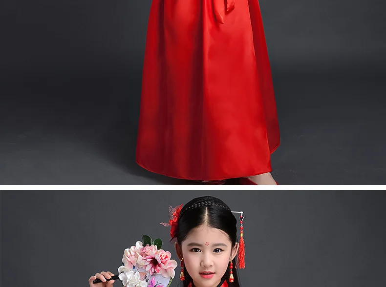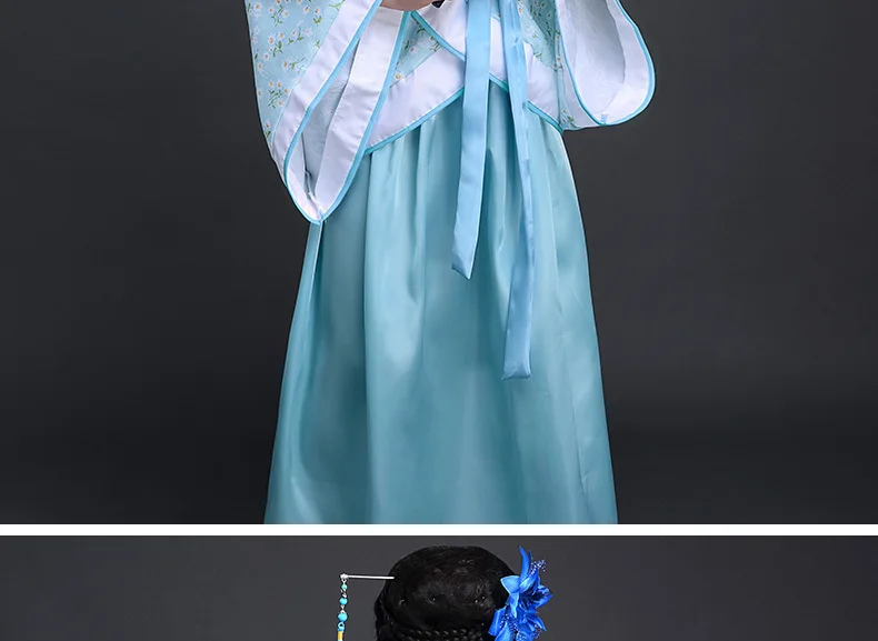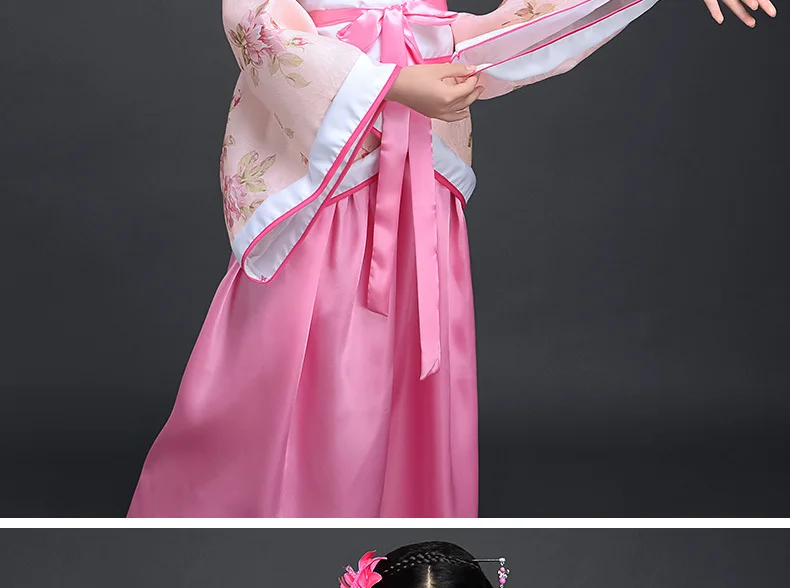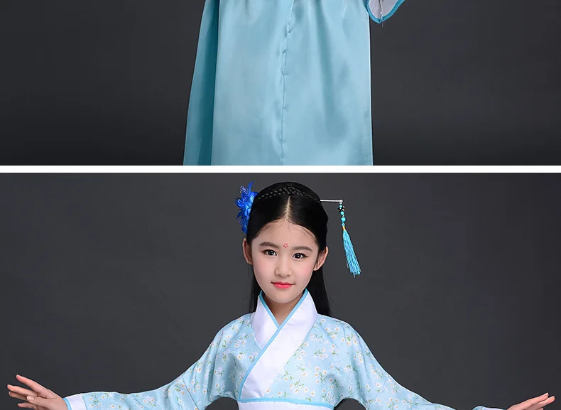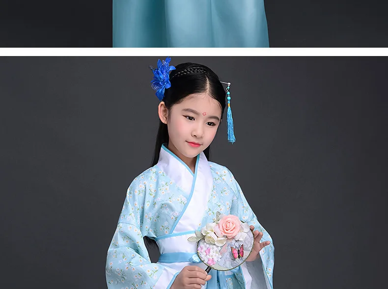 Китайский шелковый халат, костюм для девочек, детское кимоно, китайский традиционный винтажный этнический веер, студенческий танцевальный костюм для хора, Hanfu