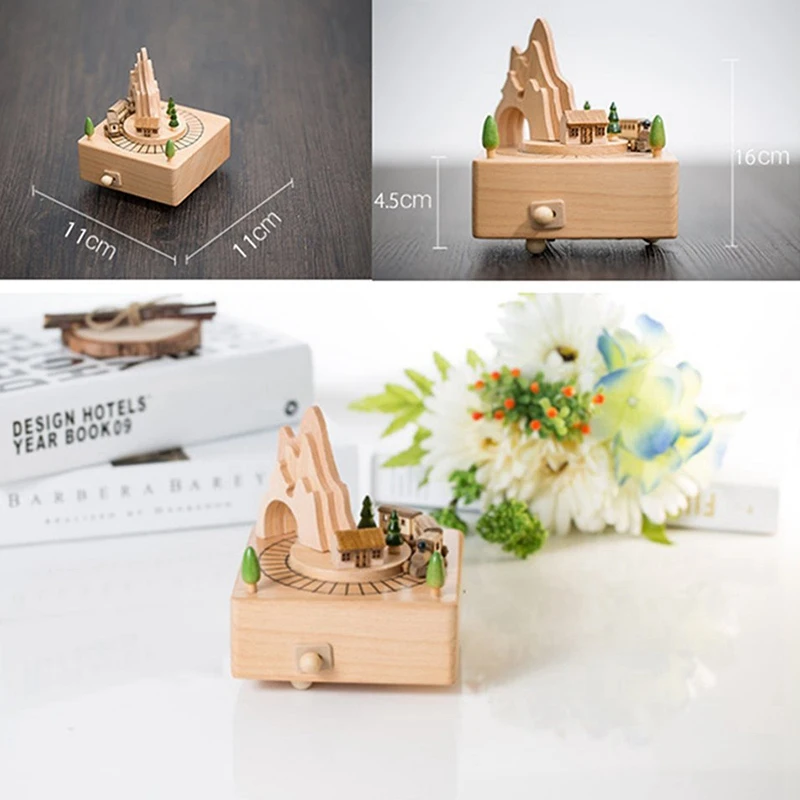 Популярная деревянная музыкальная шкатулка с изображением горного туннеля с небольшим движущимся магнитным поездом | пьесы