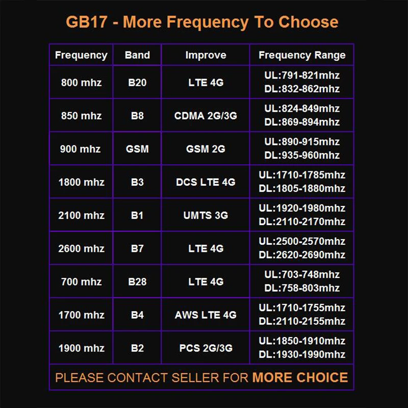 Если вам нуженGSM 900 МГц для улучшения 2G (вариант 5), пожалуйста, оставьте нам сообщение при размещении заказа по этому варианту или свяжитесь с нами, в противном случае мы отправим комплект для повышения частоты 850 МГц.