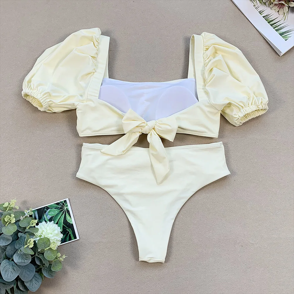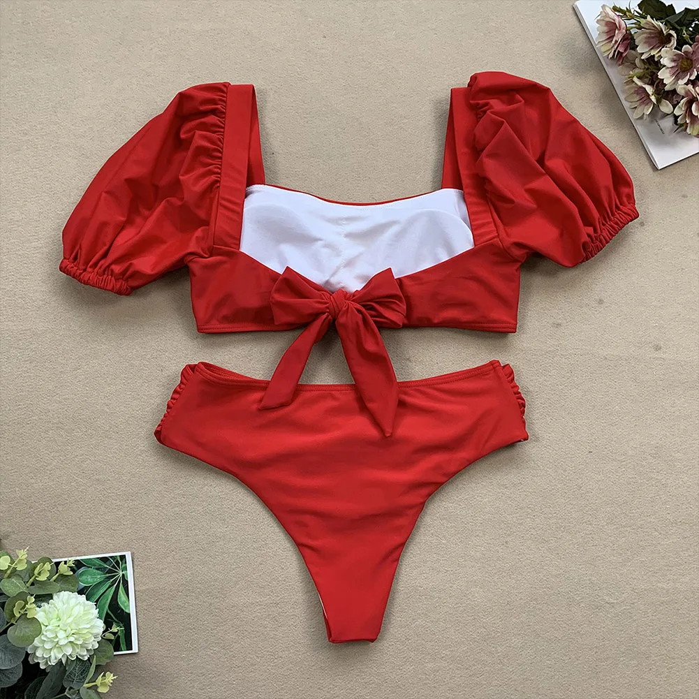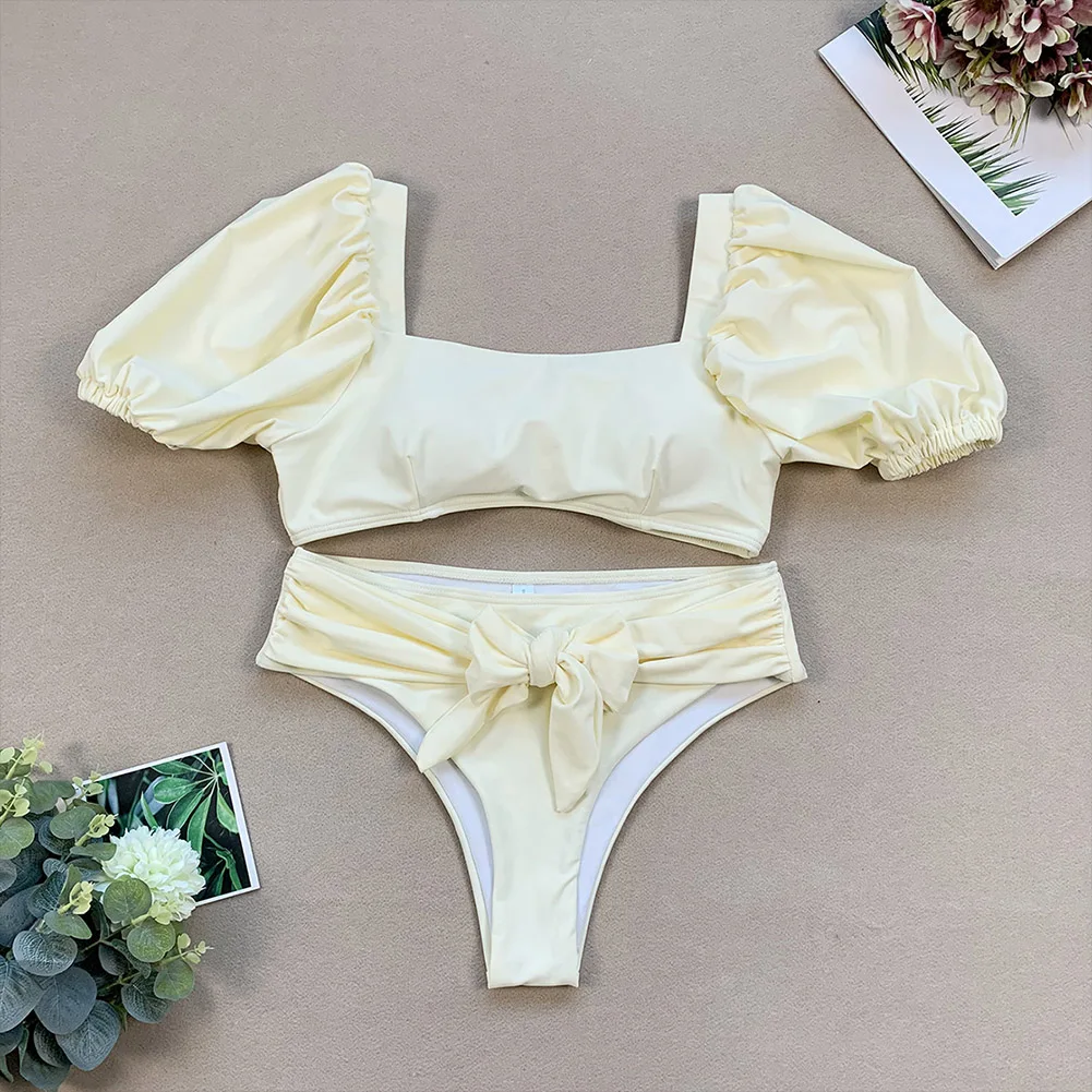 * Бикини с высоким вырезом и галстуком-бабочкой;