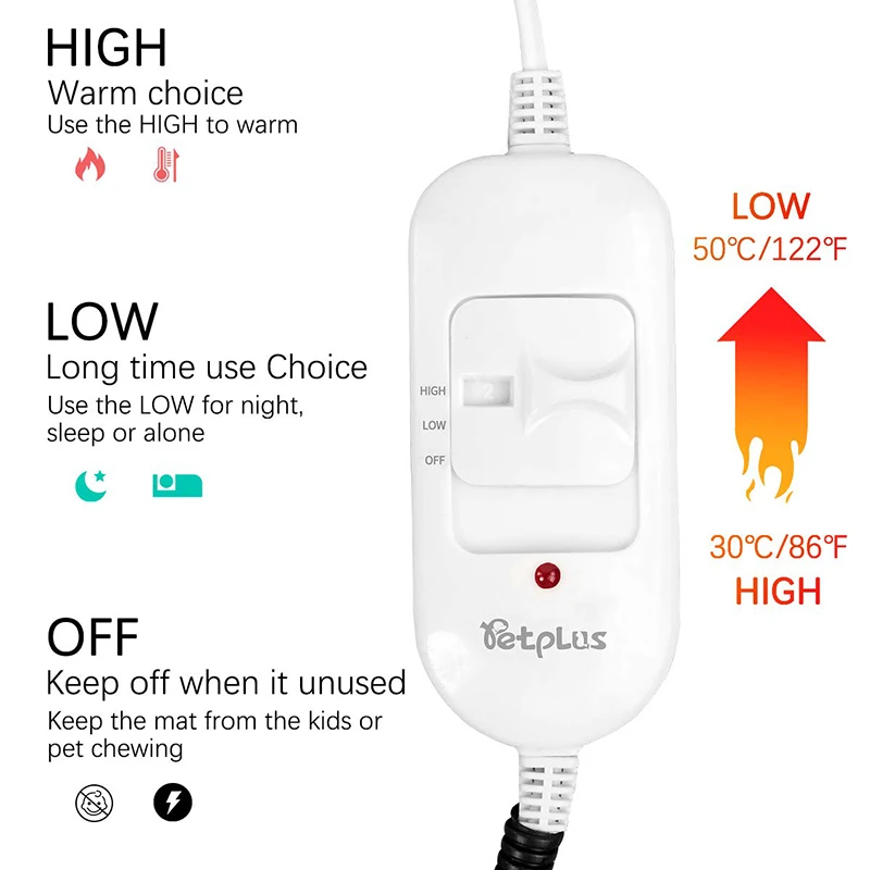 Водонепроницаемый коврик для нагрева собак и кошек для домашних животных электрические нагревательные колодки коврик с подогревом кровати с жевательной стойкостью стальной шнур 110 В 220 В Характеристика 1,【SGS Сертифицированный нагревательный элемент для домашних животных 】 нагревательный коврик изготовлен из высокотехнологичного нагревательного Оксфордского волокна, С использованием полиэфирного текстиля и который имеет лучший эффект нагрева (применяется для большинства высокотехнологичных человеческих продуктов). Он может успокоить наших собак и кошек при контакте до 24 часов, обеспечивая теплое место для нашей собаки круглый год 2,【 быстро разогревается зимой-в течение 5 минут 】 10-30 градусов теплее с 5 минут зарядки, достаточно тепло, чтобы держать собак в комфорте, но не становится слишком горячим. Электрическая нагревательная площадка для домашних животных для полиуретанового (ПУ) нагревательного материала. Это простое решение, чтобы избежать супер-охлаждения, вьющихся собак, которые борются зимой, отлично подходит для использования в качестве нагревательного коврика для домашних животных 3, 【предназначен для больших, средних и маленьких подъюбников, измеряемых 45*45 см/50*70 см, этот прочный коврик с подогревом большого размера специально разработан для собак весом от 10 до 70 фунтов. Это идеальный нагревательный коврик, или нагревательный коврик для старших домашних животных, артритных домашних животных, новорожденных домашних животных, беременных домашних животных или животных, восстанавливающихся от болезни или травмы 4, 【безопасная защита от перегрева температурный контроль. Нагревательная панель отличается огнезащитным материалом, что значительно способствует покупателям, что приводит к новым тенденциям для электрогрелки. Прочная ткань Оксфорд и водонепроницаемый для легкой очистки и анти-электрического удара (для защиты безопасности домашних животных). Жевательный шнур (закрытая ПЭТ сторона) может защитить провод от укусов, что безопасно для котят и щенков Спецификация Название продукта: кожаная электрическая подушка Размер: 45*45 см/50*70 см Вилка: США, 110 В/ЕС, 220 В Шестерни: высокие, низкие и выключенные Шнур питания: около 147 см Преимущество: Полная защита линии, высококачественная искусственная кожа, Высококачественная замша, регулировка температуры третьей передачи.
