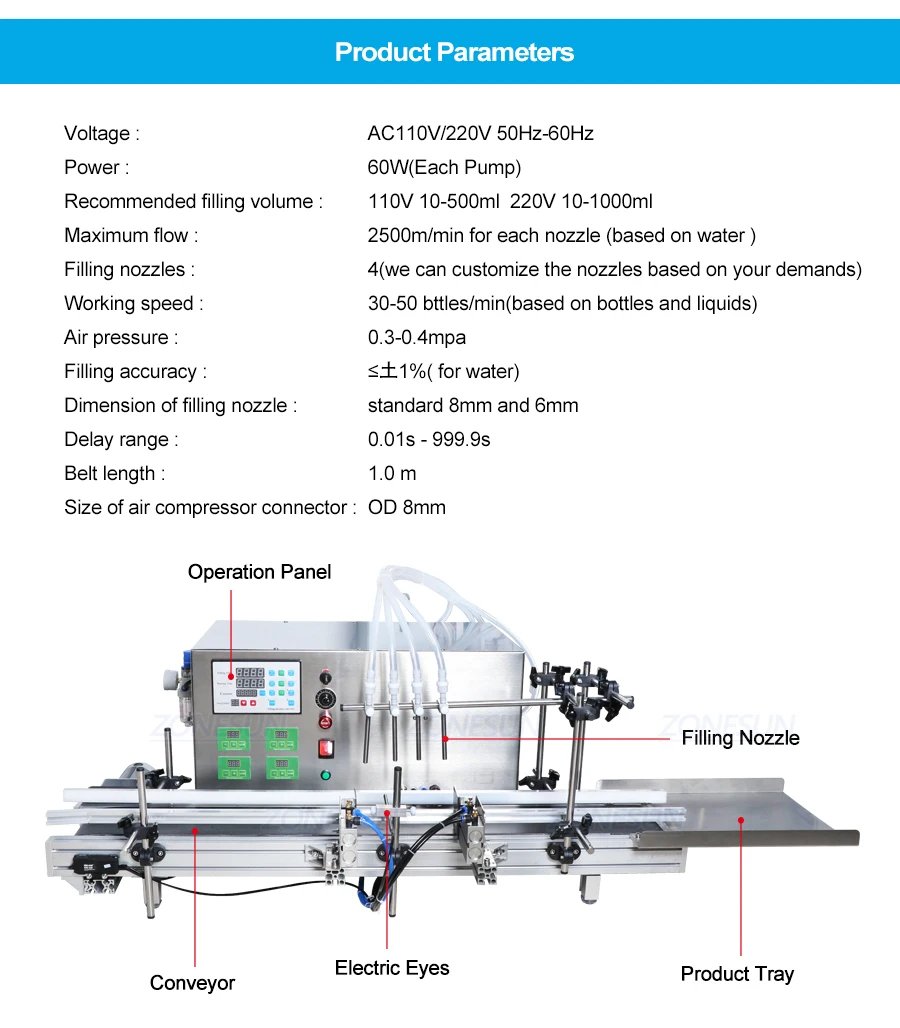 Рабочая скорость: 30-50 бутылок/мин (на основе бутылок и жидкостей)
