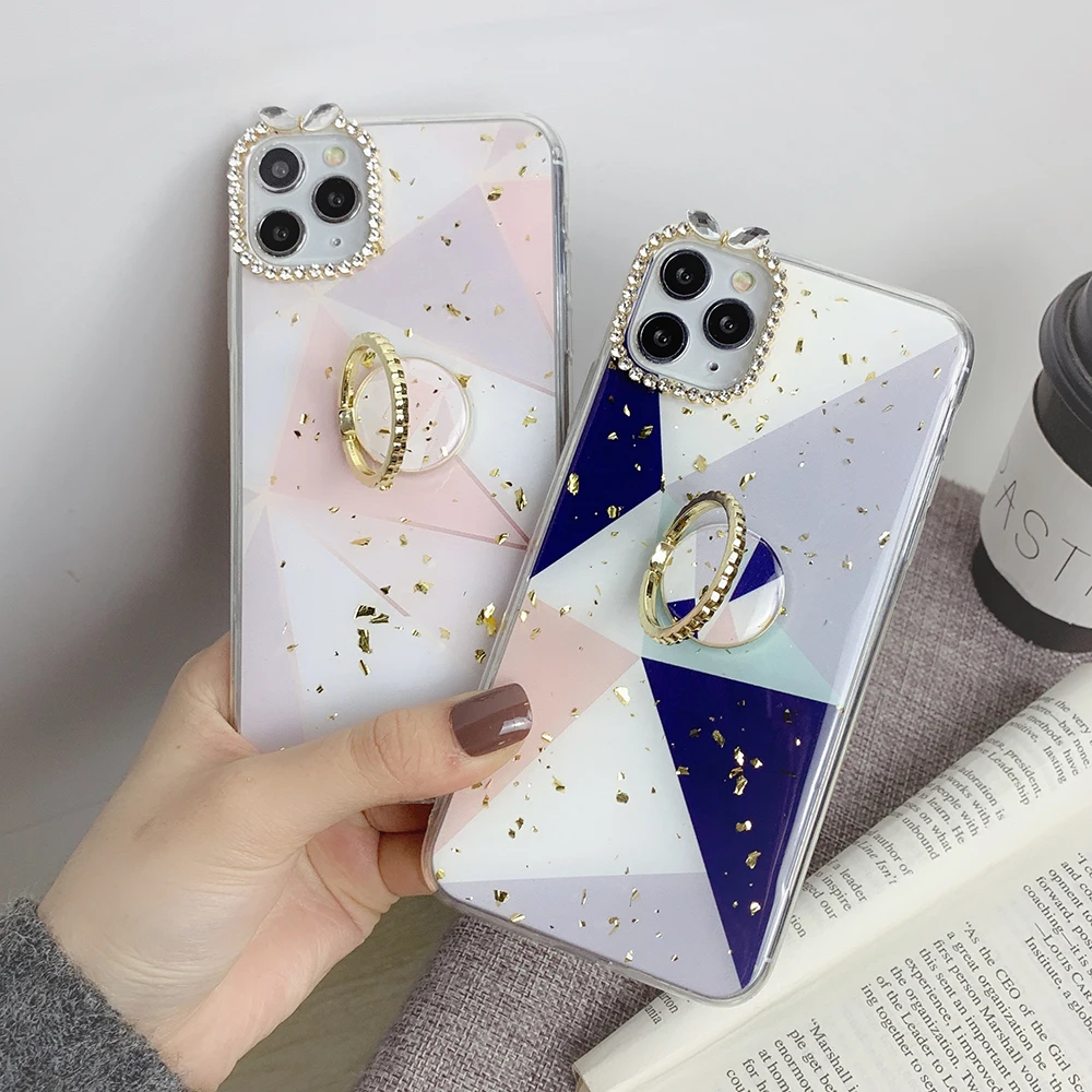 Чехол для телефона LOVECOM с геометрическим кольцом-держателем для iPhone 11 Pro Max XR X XS Max 7 8 6 Plus, мягкая эпоксидная задняя крышка для телефона