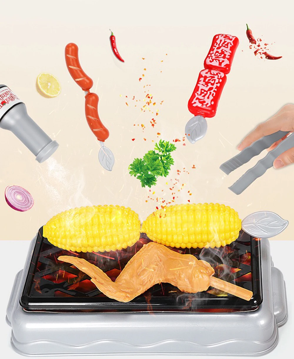 Это интересный кухонный игровой набор, включающий чайник, кастрюлю, сковороду, скороварку, индукционную плиту и набор кухонных изделий и столовых приборов и барбекю гриль!