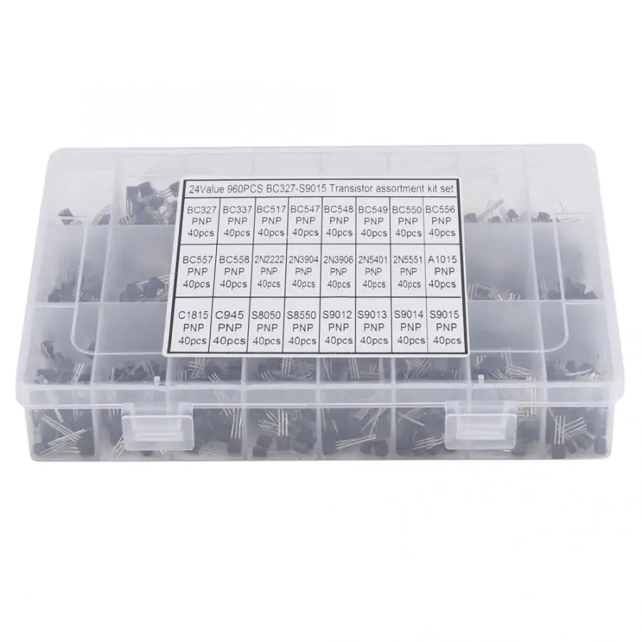 Транзисторы являются базовым полупроводниковым устройством, которое контролирует ток, который также может использоваться Как Бесконтактный переключатель. В этом наборе всего 960 штук транзисторов в 24 значениях, которые удовлетворят ваши основные потребности. Все транзисторы хорошо упакованы и ассорти в прозрачную коробку для удобного хранения. Каждый транзистор четко обозначен, так что вы можете легко определить, какой тип транзистора вам нужен. Это большой ассортимент транзисторов для электронных профессионалов или энтузиастов.