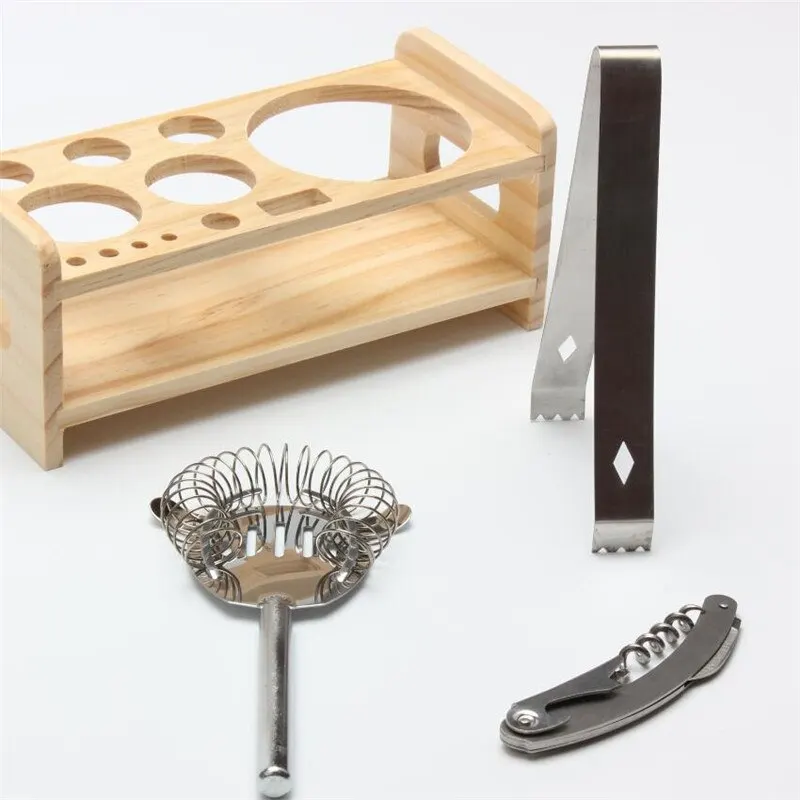 2. деревянная подставка для хранения барных инструментов: поставляется с деревянной подставкой, этот аксессуар делает его самым толстым, стабильным и твердым держателем инструментов, защищает другие аксессуары от царапин и держит ваш дом организованным.