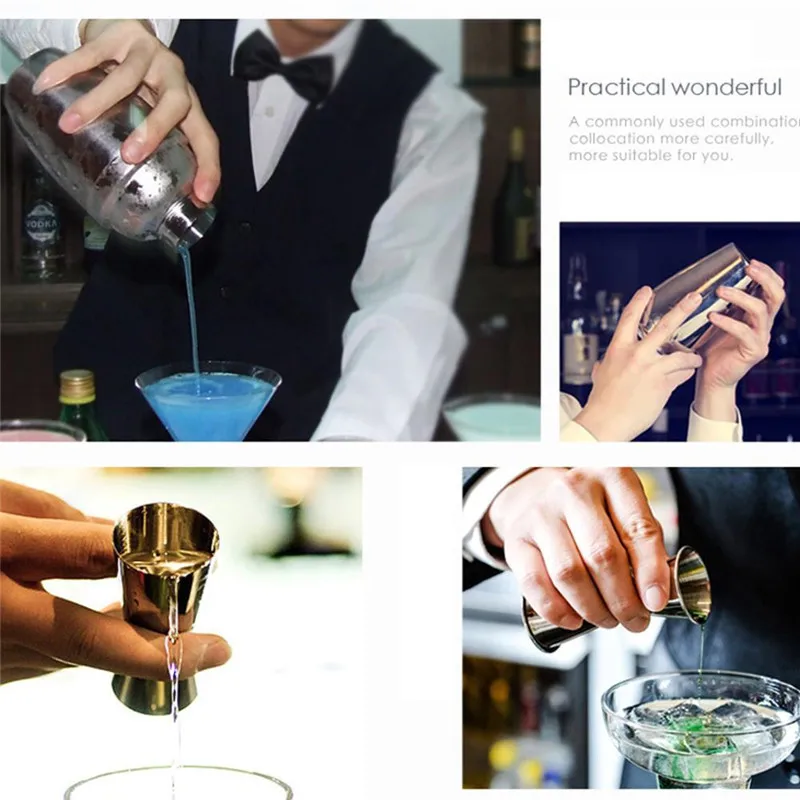 8. Полная шейкер комплект: Этот набор включает в себя: 1*550 мл/750 мл шейкер для коктейлей, 1 * Нью-Йорк (15/30 мл) измерение на входе (Вино Кубок,