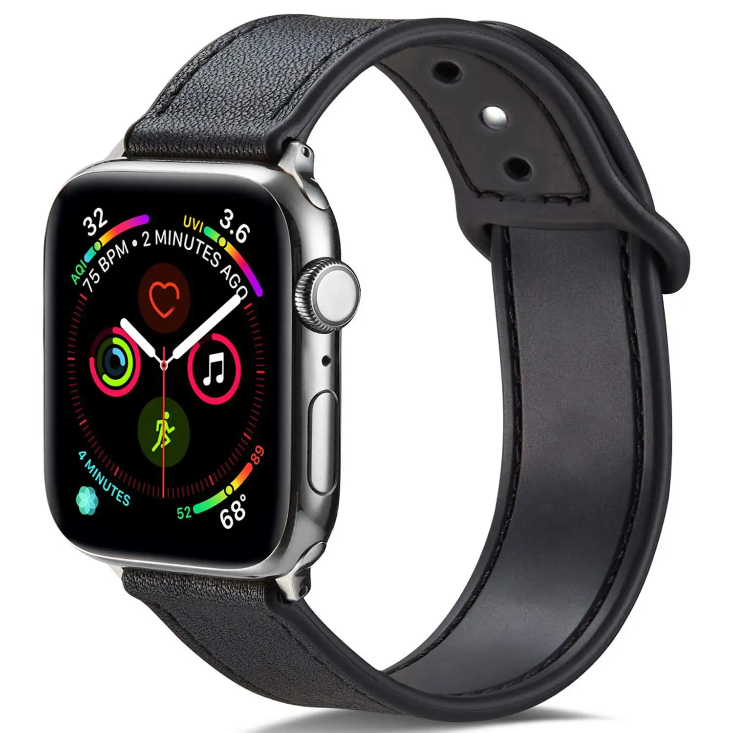 Уникальный дизайн, защищенный от пота: удобная отделка из натуральной кожи с силиконовой подложкой браслета для часов, легкая в управлении потоком в течение стандартного дня. Ваши ремешки для часов не впитывают пот, пахнут и не повреждают кожу. Прочный материал: ремешок для часов изготовлен из мягкой натуральной кожи и прочного силикона для хорошего ношения и защиты от пота. Силиконовая внутренняя часть ремешка для часов удобна и воздухопроницаема, что позволяет легко держать ее в чистоте. Мероприятия: привлекательный внешний вид кожи и мягкий, удобный на ощупь силикон. Силиконовая задняя часть идеально подходит для физических упражнений, а передняя часть кожи выглядит нарядно или повседневно. Элегантный, стильный, привлекательный внешний вид, подходящий под ваши туфли или наряд для делового, повседневного или модного платья. Надежно: легок и прост в установке/надевать и снимать ваш ремешки для часов. Соответствовать вашим часам надежно и замок на часы точно. Подходит для 6,5 "-8,8" (165 мм-225 мм) запястья. Совместим с Apple Watch series 5/4 series 3 /2 /1 Edition / Nike / Sport.