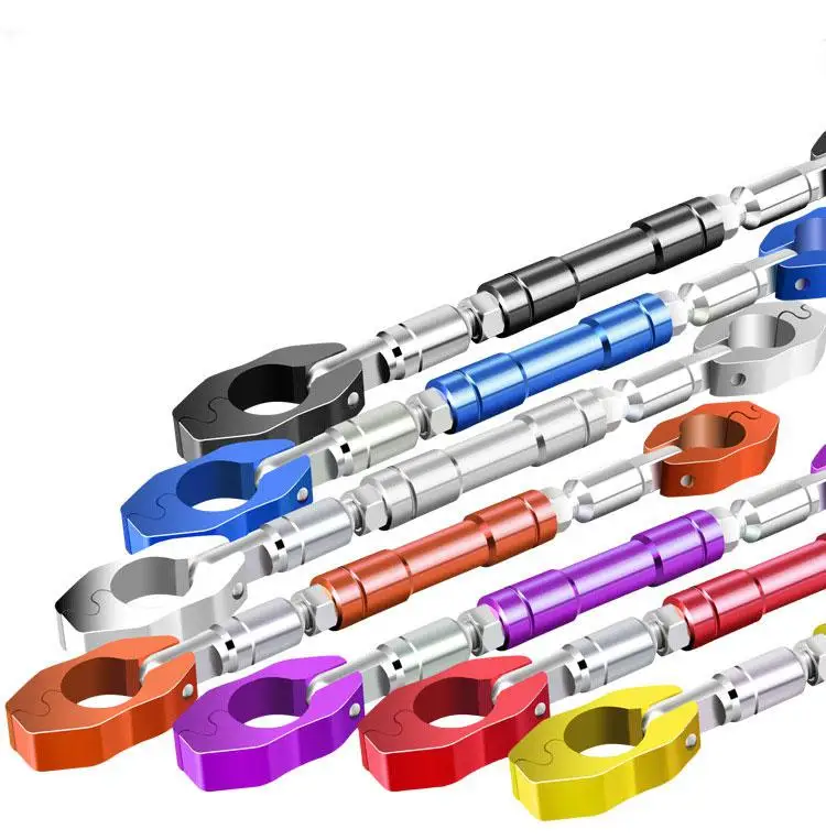 1. Material: CNC Aluminum alloy, Durable and Rust-proof. 2. Diameter of the clamps: is 7/8" (22mm). 3. Adjustable Handlebay: the bar can be about 28CM to match with different motorcycle handle. 4. Universal: Fits for most motorcycles which handle distance about 28CM. 5. Multi Function: Reduce the vibration, Keep balance and stability in high speed. Increase Power and starting speed. Ideal replacement for your motorbike.