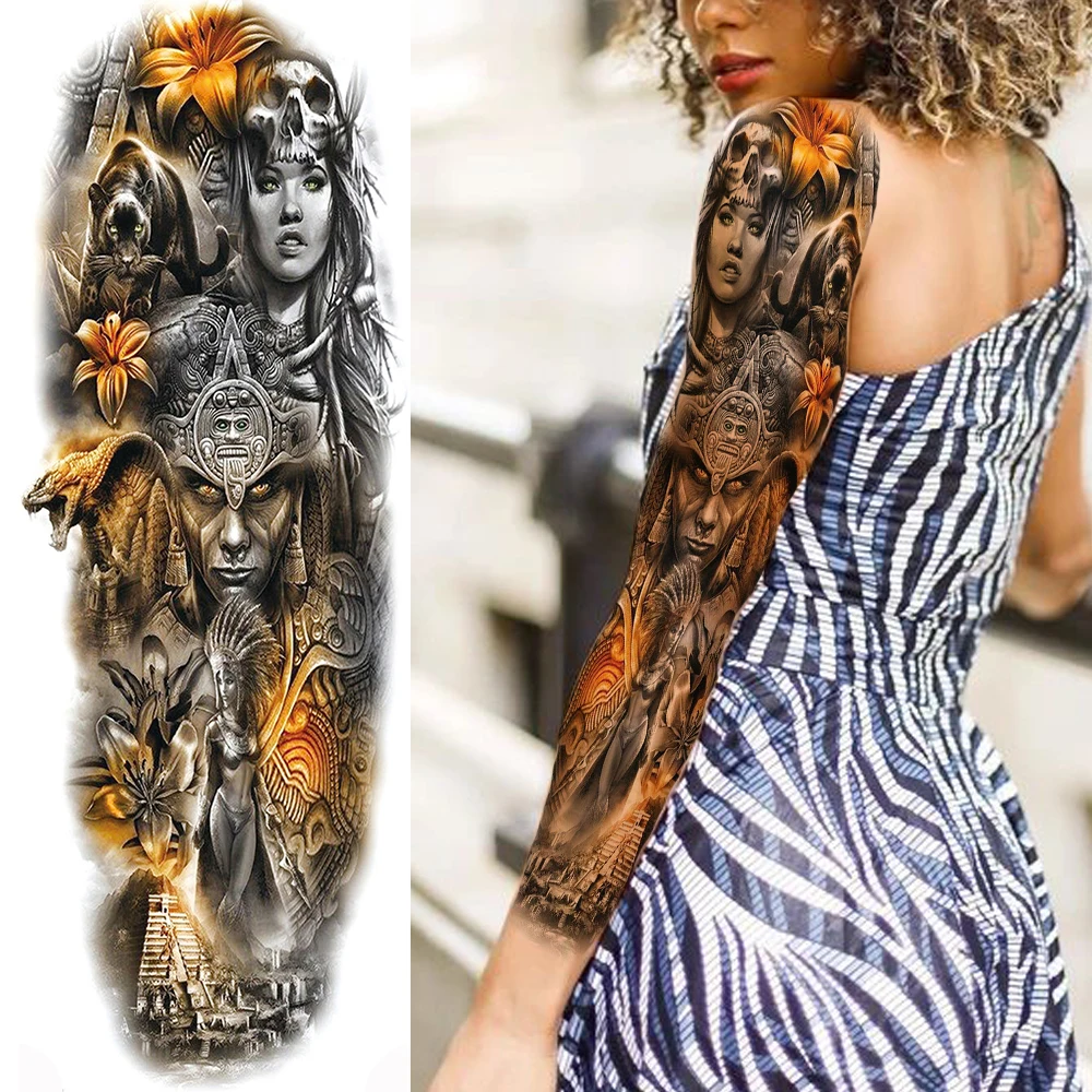 1 шт., временные татуировки с черепом дьявола, короля, для мужчин, женский боди-арт, полный рукав, цветок, тату, водонепроницаемые, поддельные тату-наклейки
