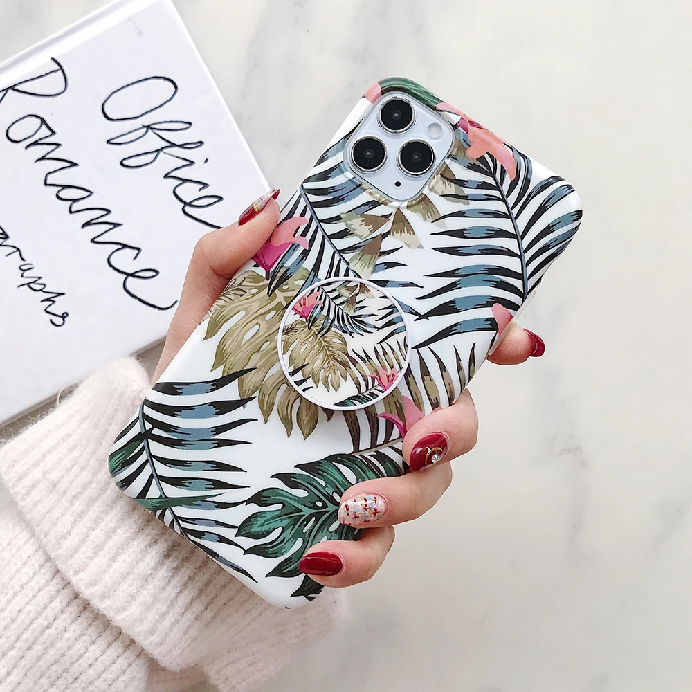 LOVECOM Винтажный чехол для телефона с банановым листом и держателем для iPhone 11 Pro Max XR XS Max 7 8 6 S Plus, мягкий матовый чехол для телефона IMD