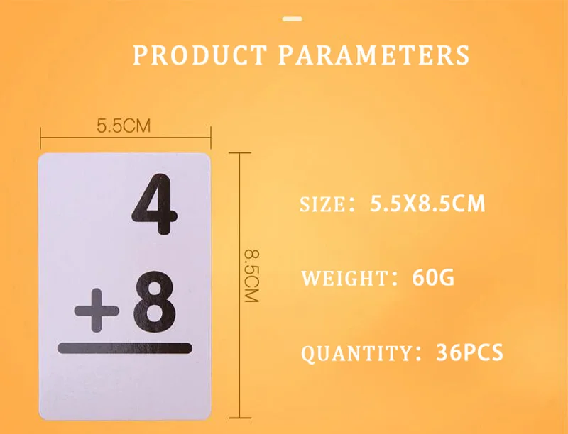 Подходит для: 2-14 лет Доступный Стиль: Математическая игрушка Материал: Бумага Размеры: Approx.5.5 * 8,5 см Комплектация: 36 шт./лот Обучающие карточки