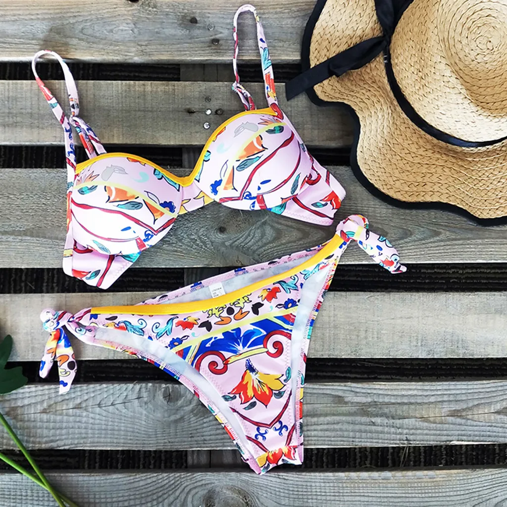 Летний женский раздельный купальник с принтом, Модный Купальник, пляжная одежда, бикини