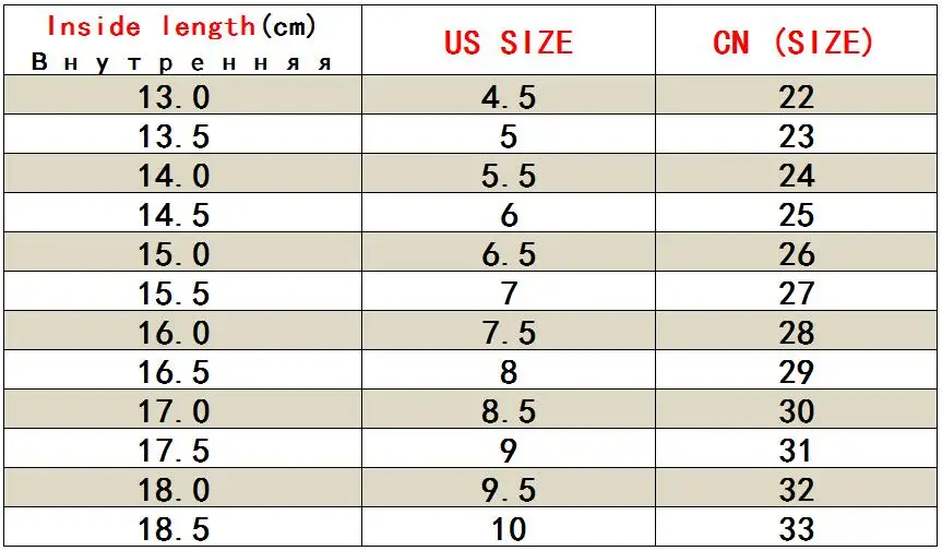 1: американский размер не является стандартным, просто удобно для вас сделать заказ. Пожалуйста, выберите размер в зависимости от внутренней длины. На обуви указан только китайский Размер. Пожалуйста, при получении товара обратитесь к китайскому размеру 2: Мы не вернем вам деньги, если вы выбираете неправильный размер, пожалуйста, выберите размер внимательно. 3: способ выбрать идеальную обувь для ваших детей. Длина стопы + 1 см = Внутренняя длина. Пожалуйста, измерьте длину стопы вашего ребенка, как показано ниже. В том случае, если ее/его, что соответствует длине стопы в 11,5 см; Вы можете добавить сюда свой 1 см. Что сказать, выбирайте внутренняя длина 12,5 см. Спасибо за вашу поддержку. 4: из-за различных методов измерения может быть погрешность около 1 см, является нормальной.