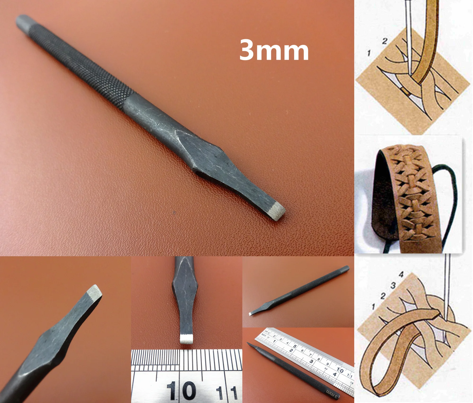 7 вид кожаного изделия: шлицевая прямые плоский наконечник линейки Pro шнуровка зубило укалывание Утюг Перфоратор Инструмент 3/5/6/8/10/12 мм