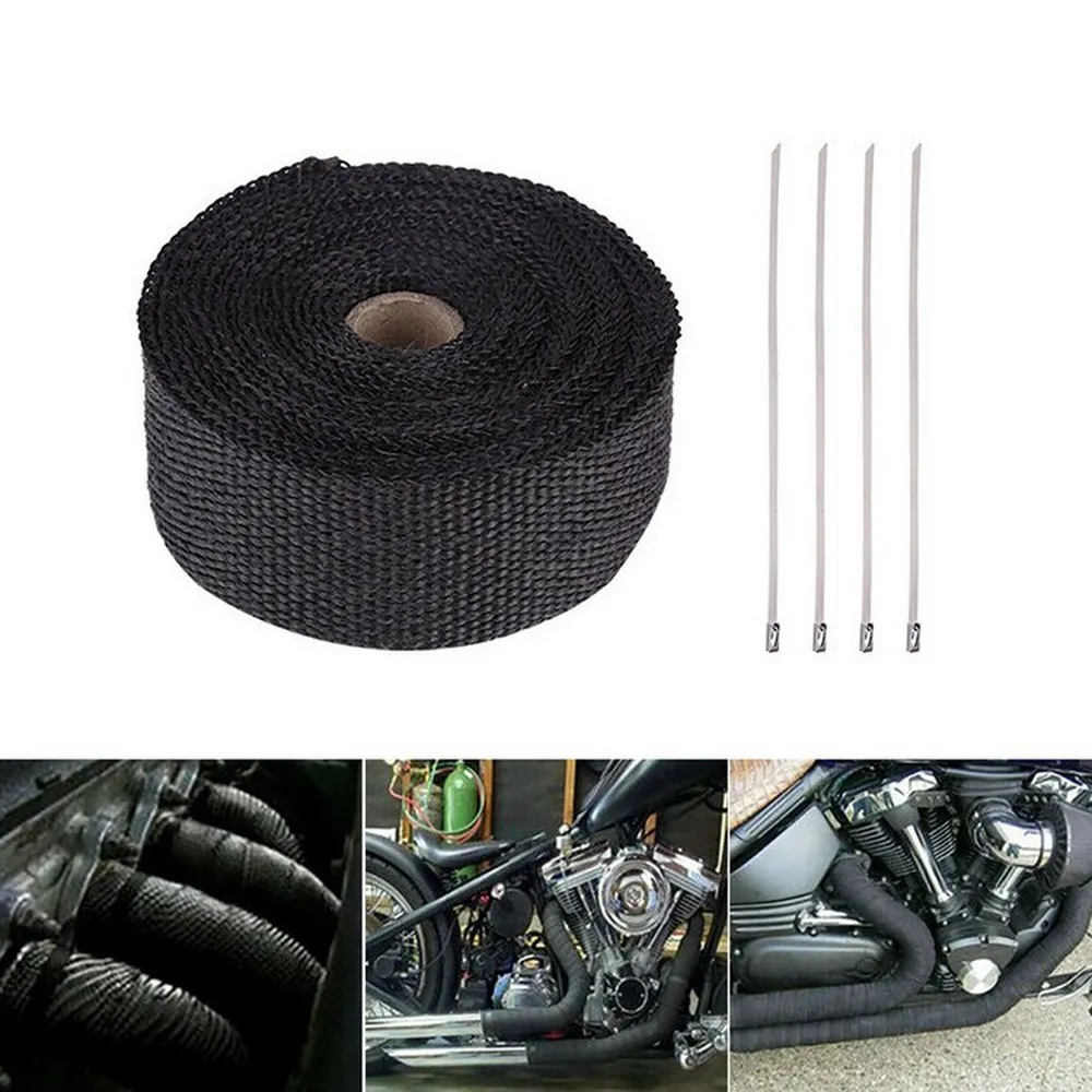 5 м Стекловолоконная лента авто мотоцикл обмотка на выхлопную трубу изоляция градусов температуры хлопчатобумажная изоляция тепло обернутый кран
