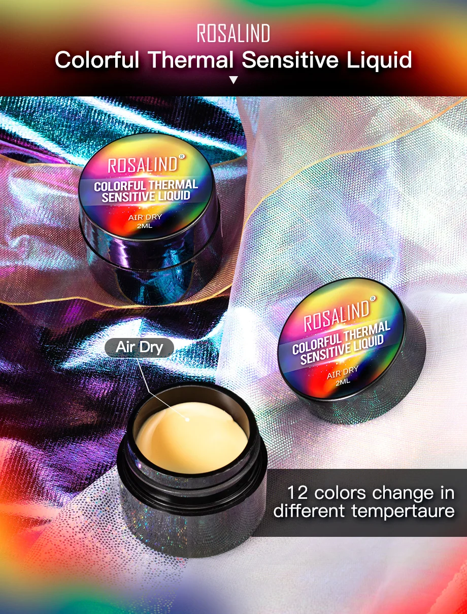 Цветной термочувствительный лак ROSALIND функциональный гель для сушки воздуха 12 цветов изменение температуры