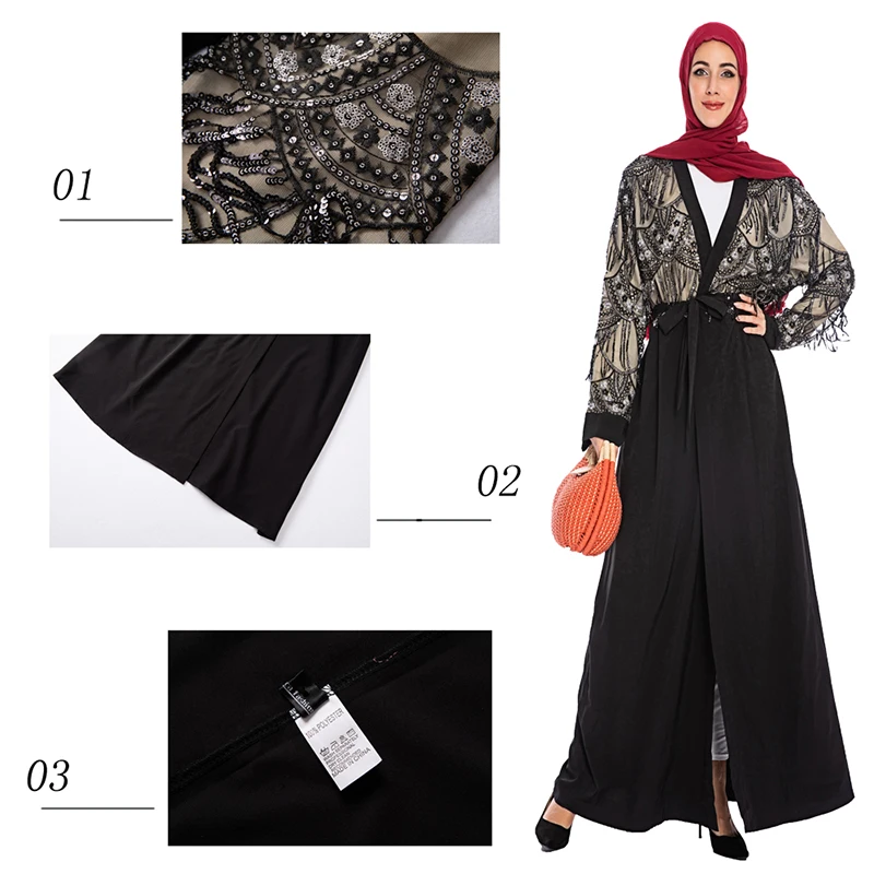 XL: размер США 18 Вт, размер Дубай 58, обхват груди 117 см, рукав 60 см, длина 148 см