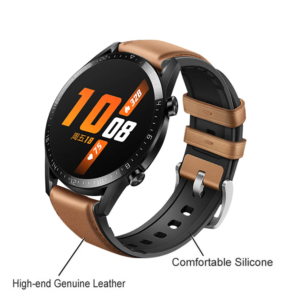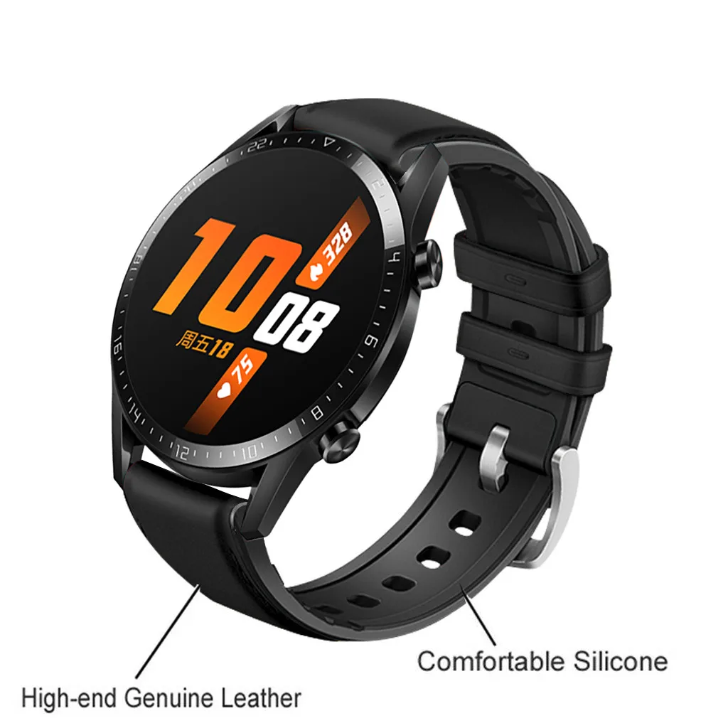 Сменный кожаный + Силиконовый ремешок для наручных часов Huawei Watch GT2 46 мм