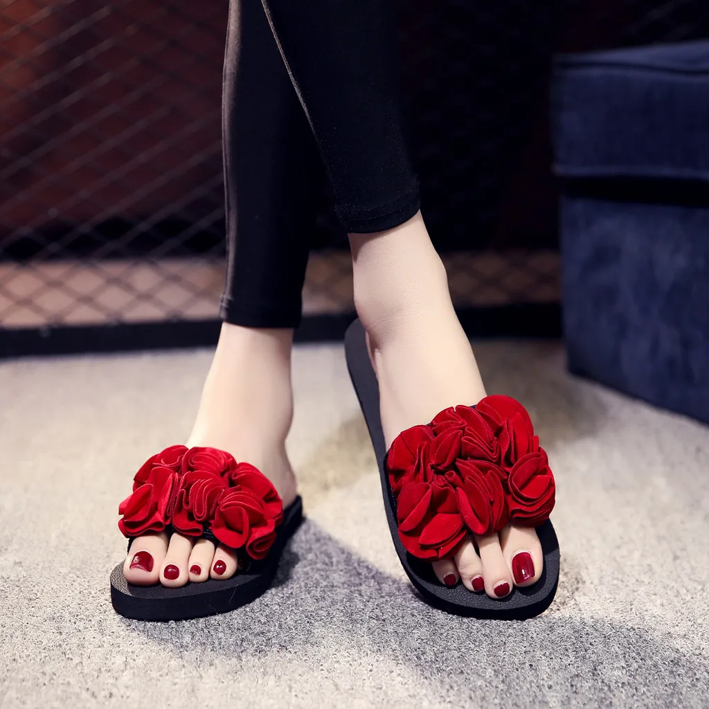 Женские шлепанцы на плоской подошве в богемном стиле с цветочным принтом; летние сандалии; нескользящая пляжная обувь