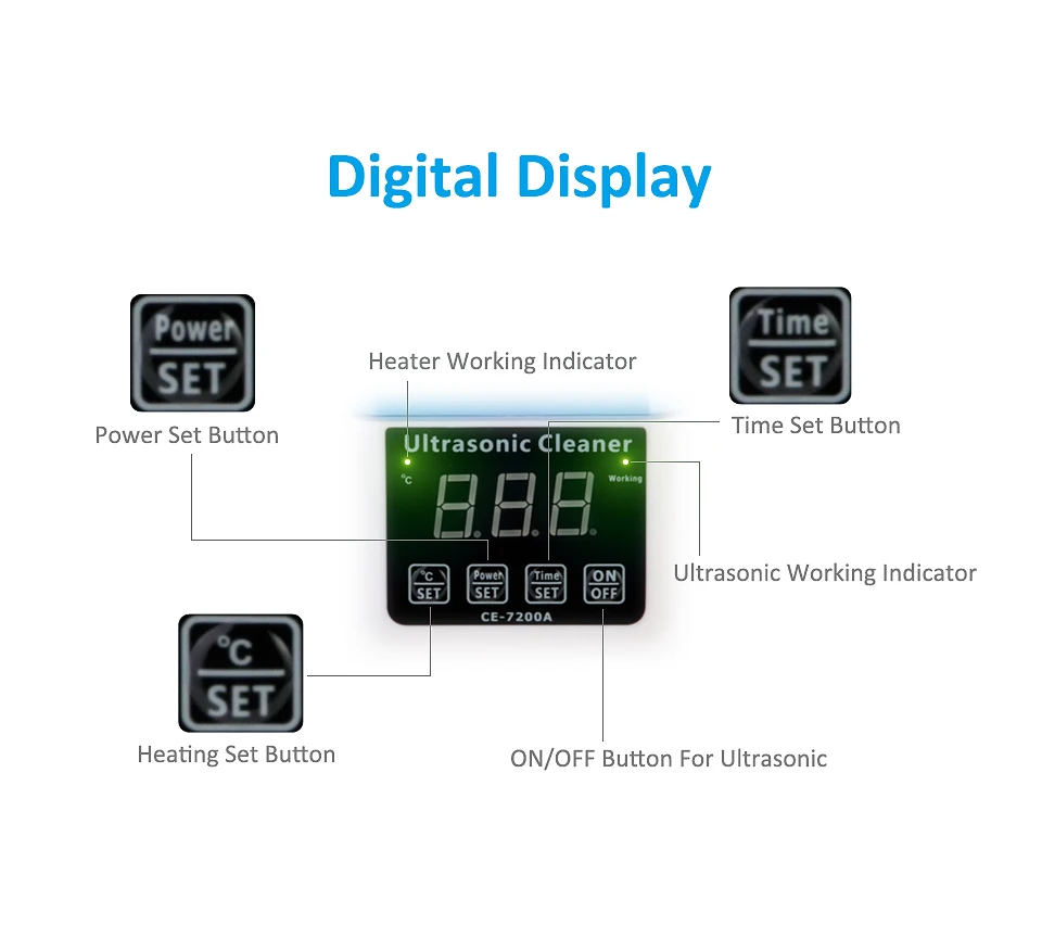 1) промышленный дизайн цепи 2) Функция подогрева-это единственный бытовой стиль 3) Улучшенный эффект очистки-2 датчика 4) 5 цифровых настроек времени, 5 регулируемых мощности и 5 дополнительных температур нагрева. 5) с бесплатным сетчатым экраном