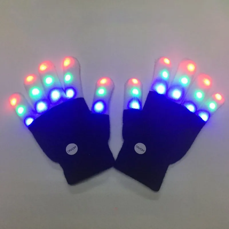 2. Светодиодный перчатки ночной Светильник палец светильник ing мигающее сияние варежки. Прост в использовании. Различные настройки цвета и узоры светильник проходит через нажатием кнопки на запястье; Яркий мигающий цветной светильник s привлечет внимание детей