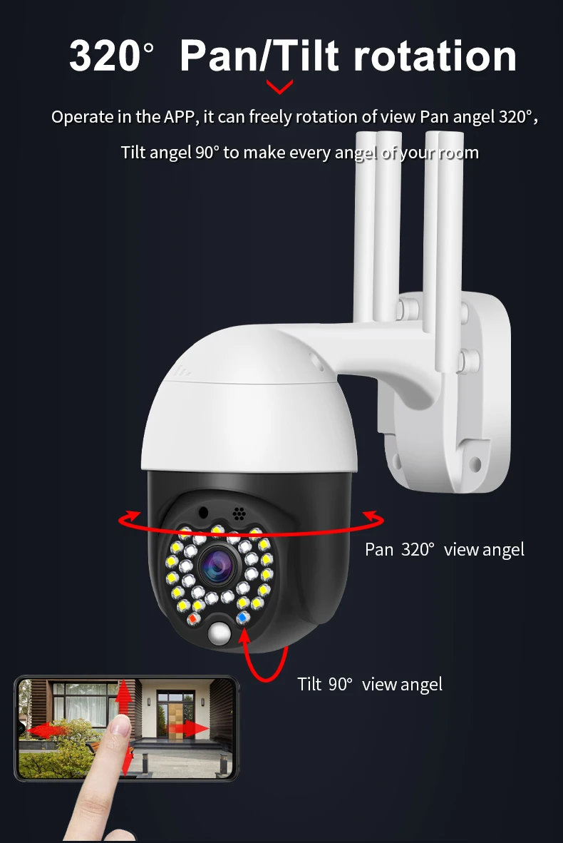 ● Работает в приложении, он может свободно вращать панорамирование ангела 320 °, наклон ангела 90 °, чтобы сделать каждого ангела вашей комнаты