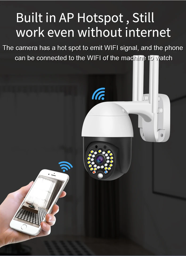 ● Камера имеет горячую точку, чтобы излучать WIFI сигнал, и телефон может быть подключен к WIFl madine taatch