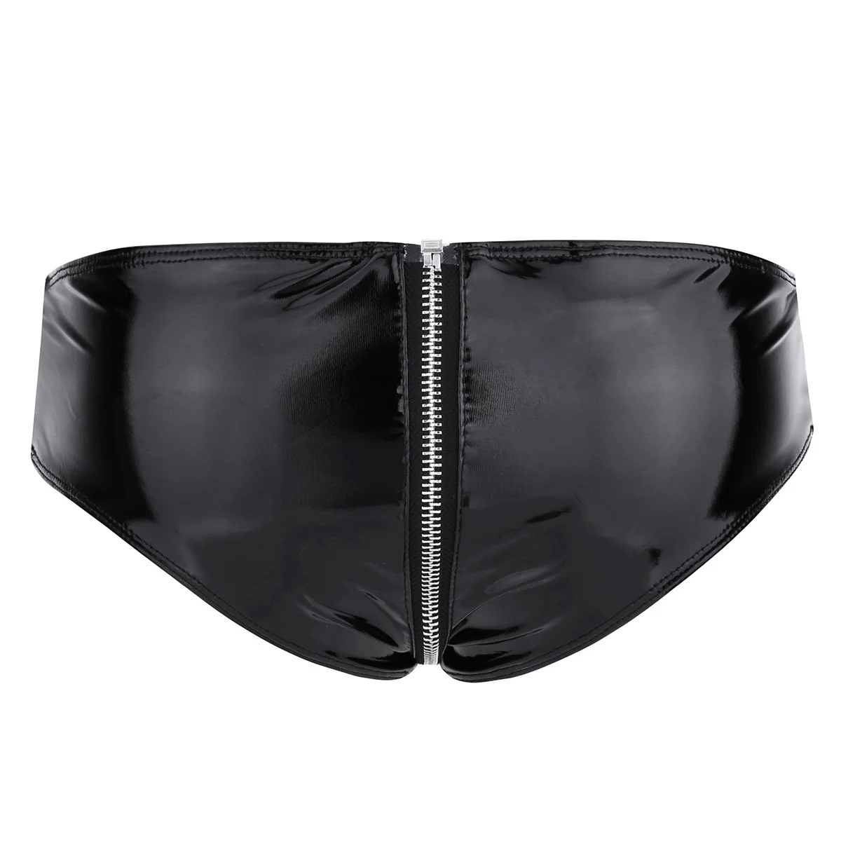 Женские трусы-бикини из лакированной кожи, нижнее белье из эластичной ткани.