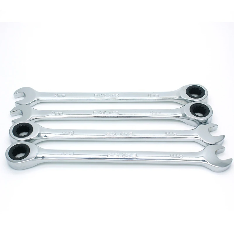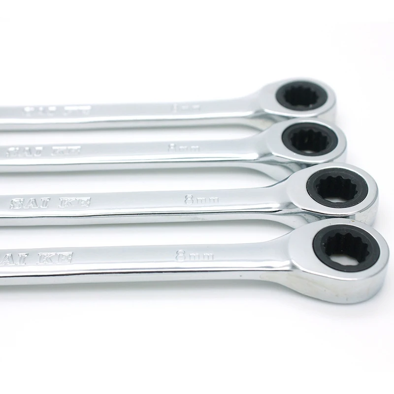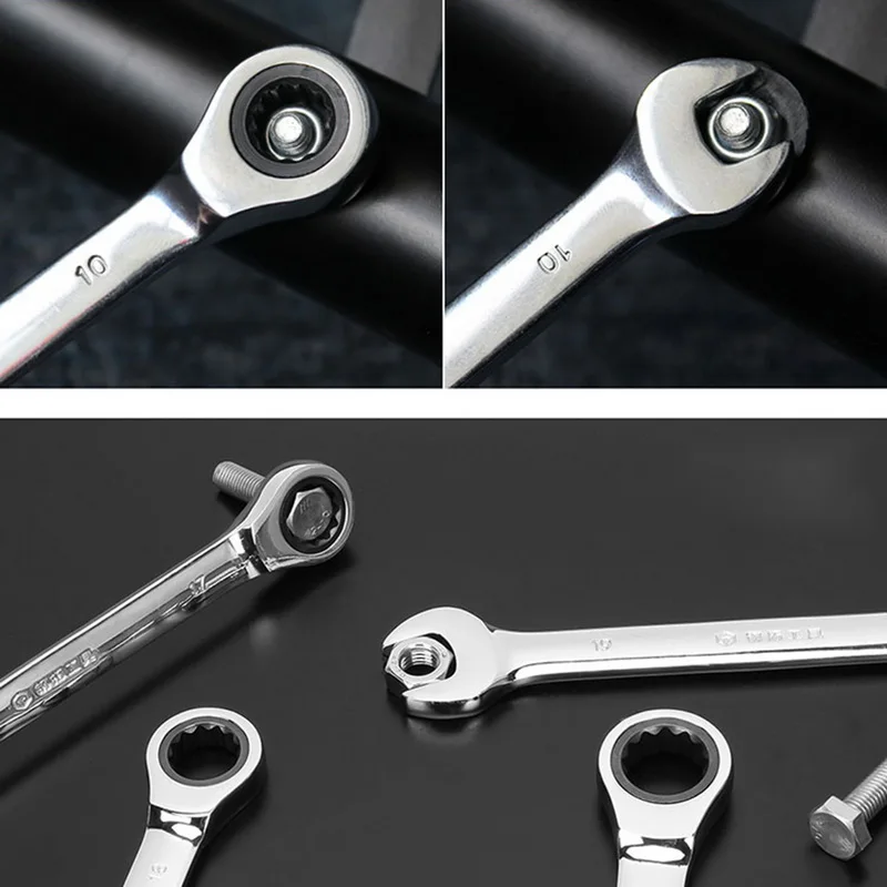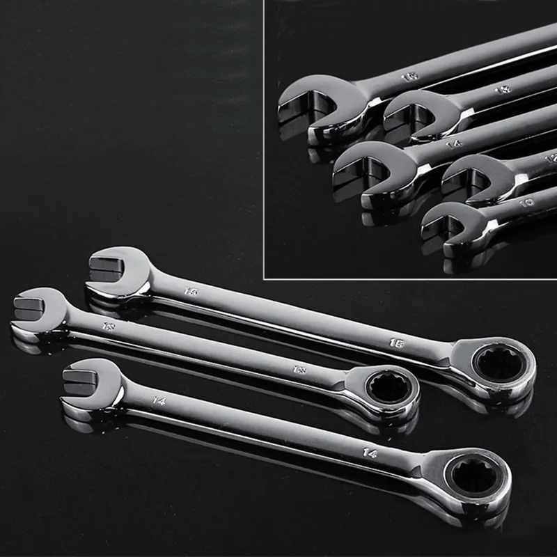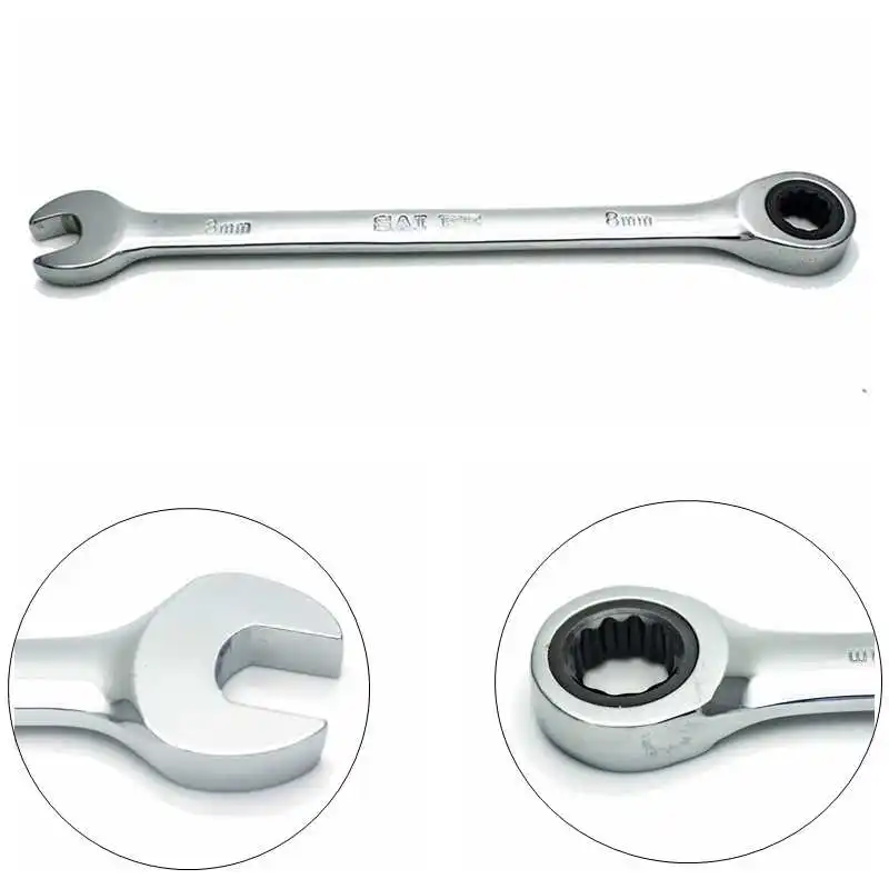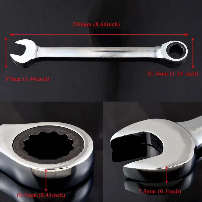 Хром-ванадиевая сталь с зеркальной полировкой, предотвращающая попадание масла и грязи в гаечный ключ, что облегчает очистку и предотвращает появление ржавчины. 72-зубчатой зажимные системы, которая требуется всего 5 ° движения, чтобы работать с трещоткой. Тонкая конструкция стены для большего доступа.