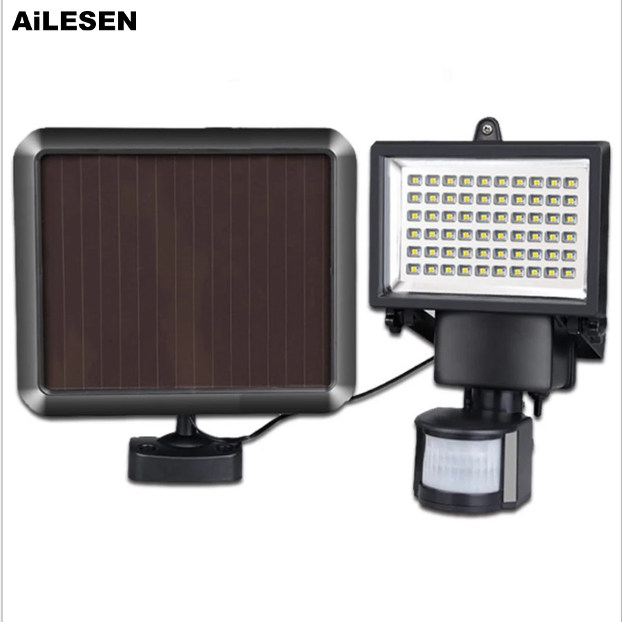60 светодиодов солнечной энергии PIR датчик движения Точечный светильник безопасности Наводнение Открытый настенный газон сад путь лампа уличный светильник Современный алюминий