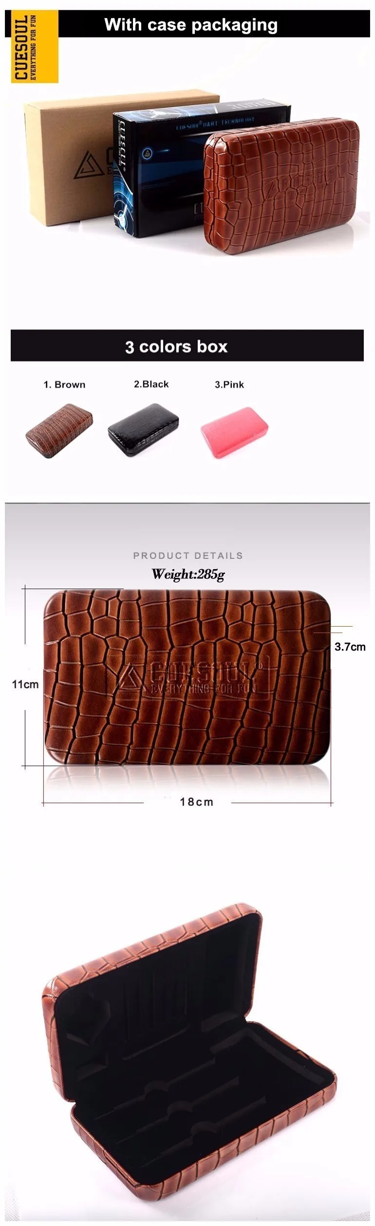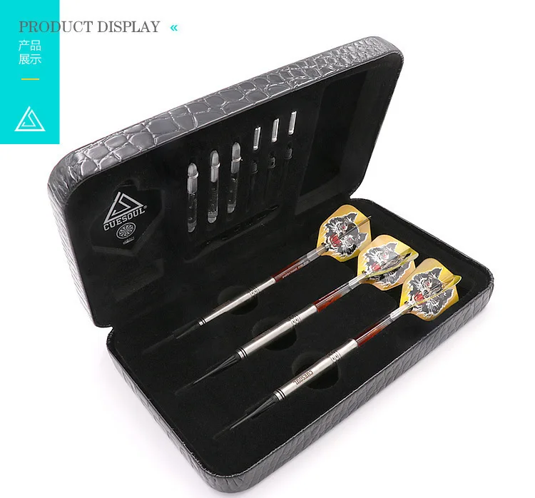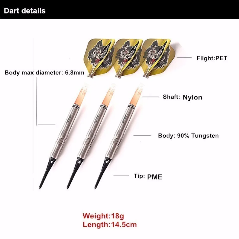 Дротика: 90% вольфрамаНаконечники для дротиков: ПКОДротика вал: нейлонДротика полет: ПЭТДротика бочки максимальный диаметр: 6,8 ммОбщий вес: 18 г (включая наконечник, цилиндр, вал, полет)Общая длина: 14,5 смКожаный чехол в комплекте:3 ×darts9 × полетов3 ×nylon валы3 × Дротика протекторы3 × Дротика мягкие наконечники1 × Дротика точилка1 × инструмент для метания дротиков1 × кожаный чехол(Вы можете оставить сообщение, чтобы выбрать цвет коробки, черный, коричневый, розовый)