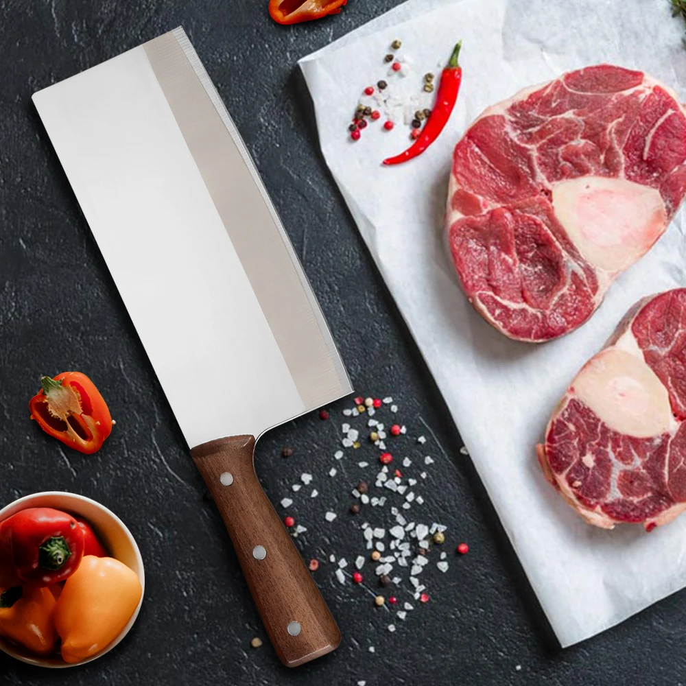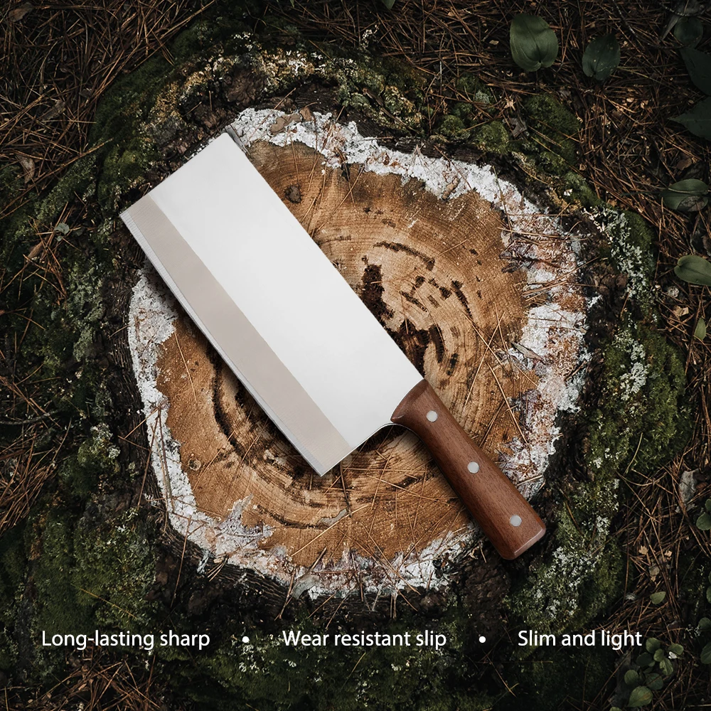Посылка включает в себя: 1*8 дюймов разделочный нож (Доступно 3 модели, показаны на разных экранах) 1. Технические характеристики Материал лезвия: нержавеющая сталь 3Cr14 Материал ручки: три стальных гвоздя с деревянной ручкой 2. Особенности Этот разделочный нож прочный и острый, он предназначен для высококачественной кухонной посуды и должен быть вашим лучшим выбором для кухонной жизни. 3. Обратите внимание: из-за различных методов измерения размер и вес продукта могут иметь небольшую погрешность; Пожалуйста, не помещайте в посудомоечную машину.