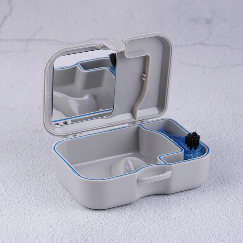 Одна пластиковая коробка для фиксации протезов с 1 зеркалом и 1 чистящей щеткой.