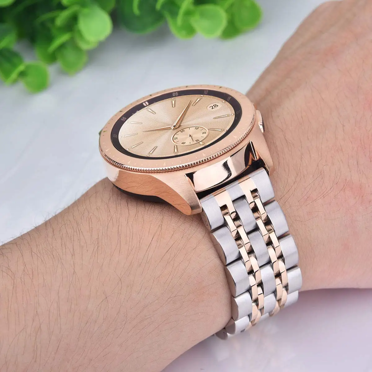 7 перламутровые стальные классические ремешки из нержавеющей стали: Ширина ремешка 22 мм Материал: нержавеющая сталь Посылка включает: 1 * браслет из нержавеющей стали (часы не входят в комплект)