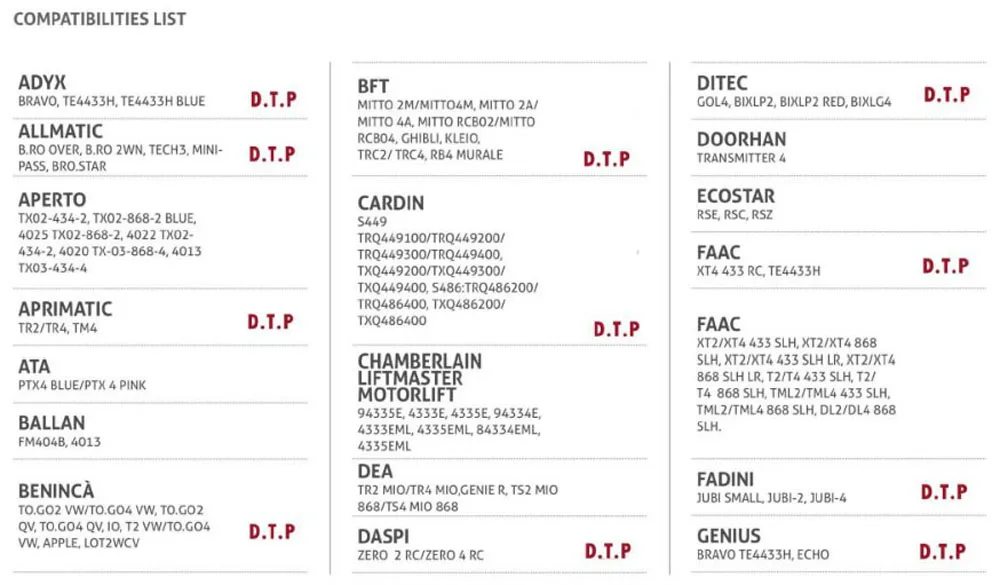 5. Активируйте оригинальный ресивер (D.T.P), чтобы добавить новый пульт на приемнике или выполните процедуры оригинальных производителей. Генерирующий пульт дистанционного управления