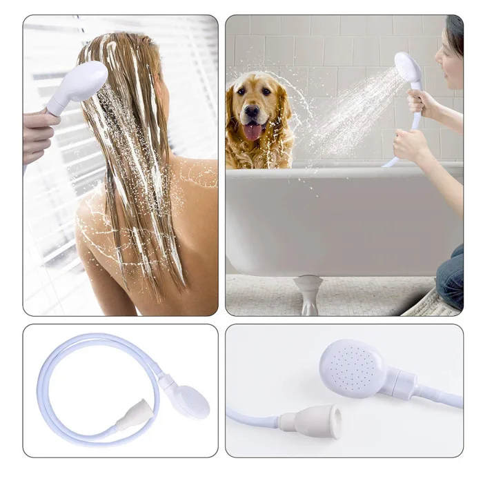 Портативный распылитель: Может использоваться для принятия душа и мытья волос самостоятельно, или хотите очистить волосы вашего питомца дома или в дикой природе. Он подходит для кран с круговым розетки с диаметром 0,59 в 1 в такой стране, как. Не наносите на все краны.