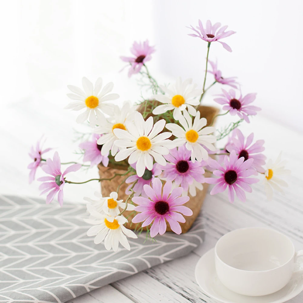 Product Information: Name: daisy Material: silk fabric+plastic specification: 1 branch with 5 flower heads Size: 51cm(total length), flower diameter:4cm