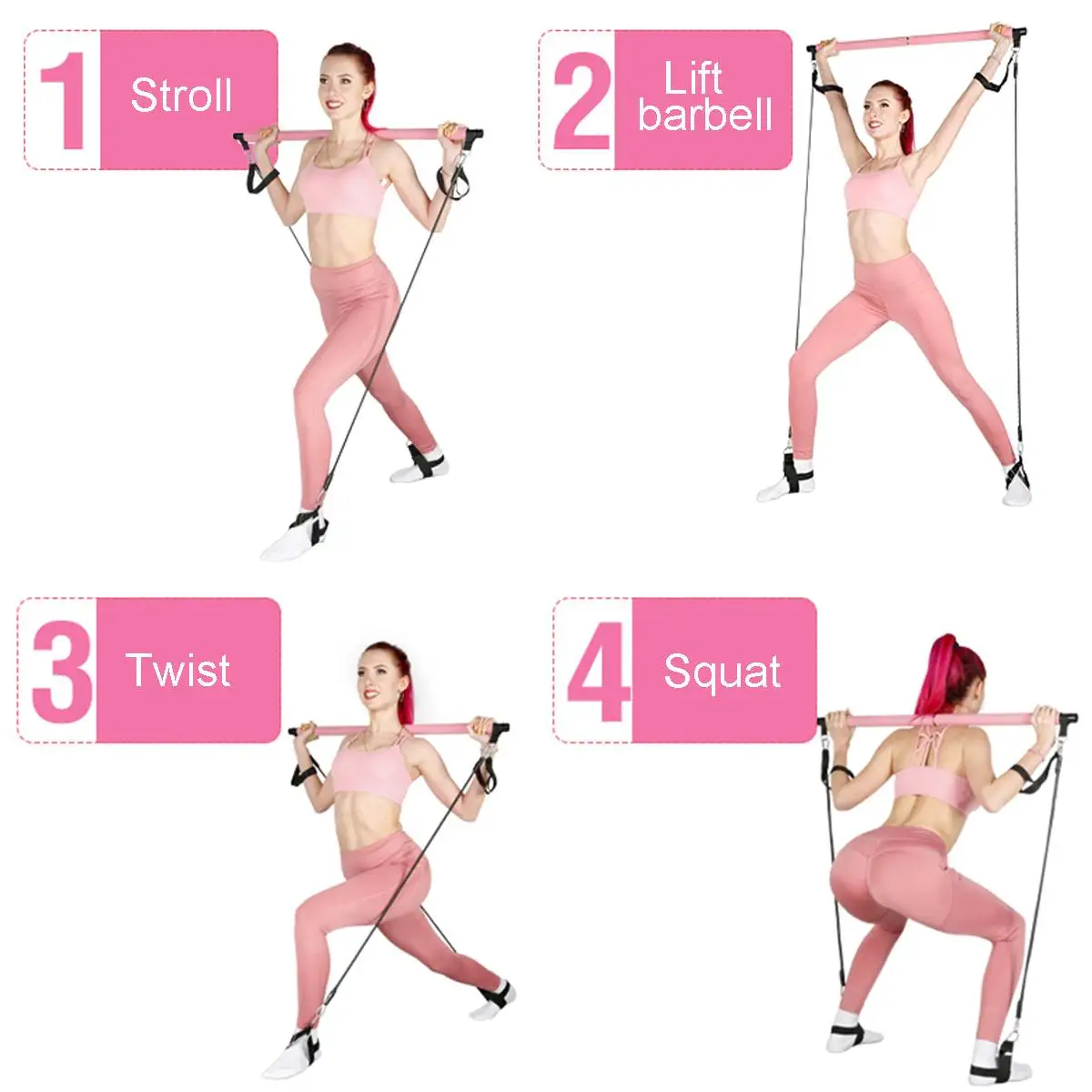 Особенности:-легкий и портативный позволяет легко использовать дома или в личной тренировочной студии. -Используется для пилатеса, а также для силовых тренировок верхней части тела. -Включает в себя Пилатес с двумя шнурами питания с прикрепленными петлями для ног с каждой стороны. -Портативный пилатес-это идеальный инструмент для движений в стиле реформатора без тяжелого оборудования. -Вы можете выполнять различные тренировочные действия, можно заменить штангу для упражнений на мышцы спины и рук, можно заменить тяговую веревку для упражнений на мышцы ног, можно напрягать талию и живот при скручивании талии.