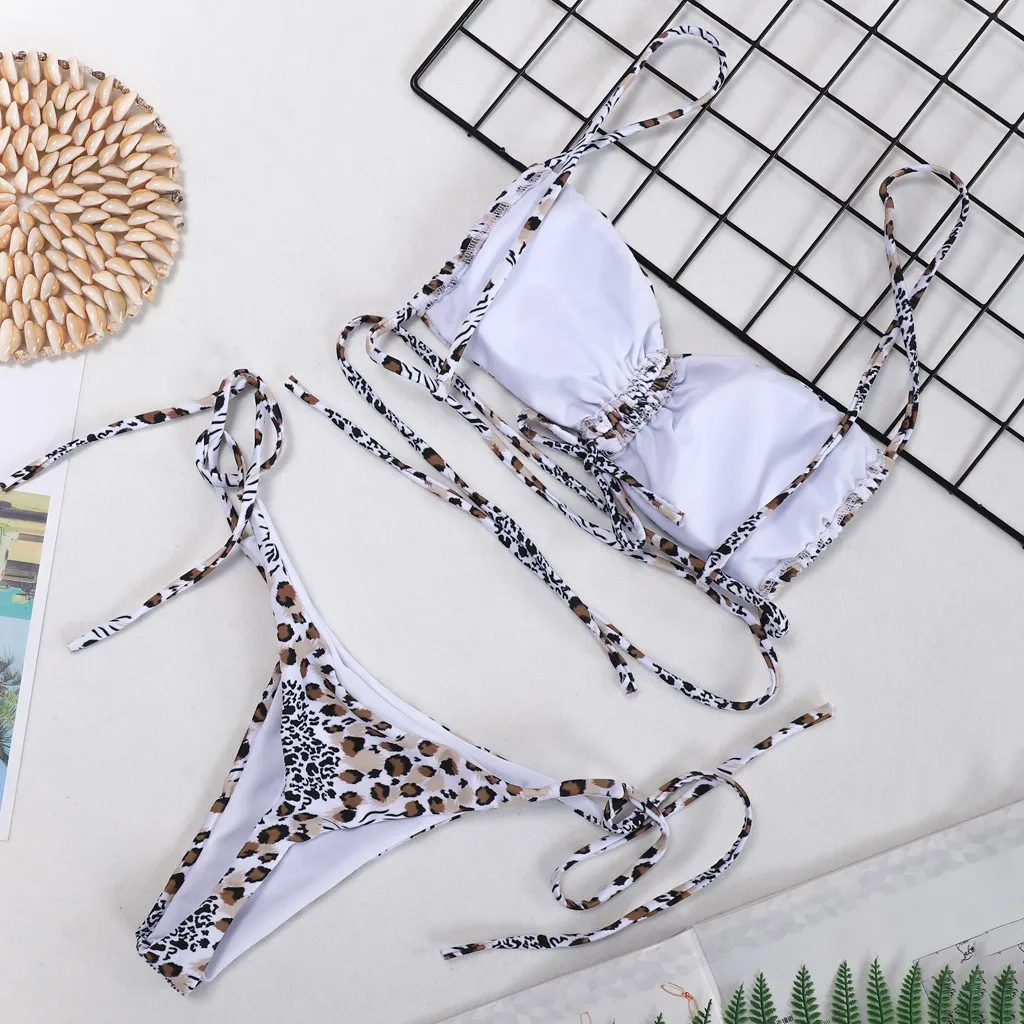 Бикини, женский купальник, купальный костюм, топ на бретелях, 2020, сексуальный, с принтом, бандаж, из двух частей, для женщин, с высокой талией, для бассейна, пуш-ап, купальник