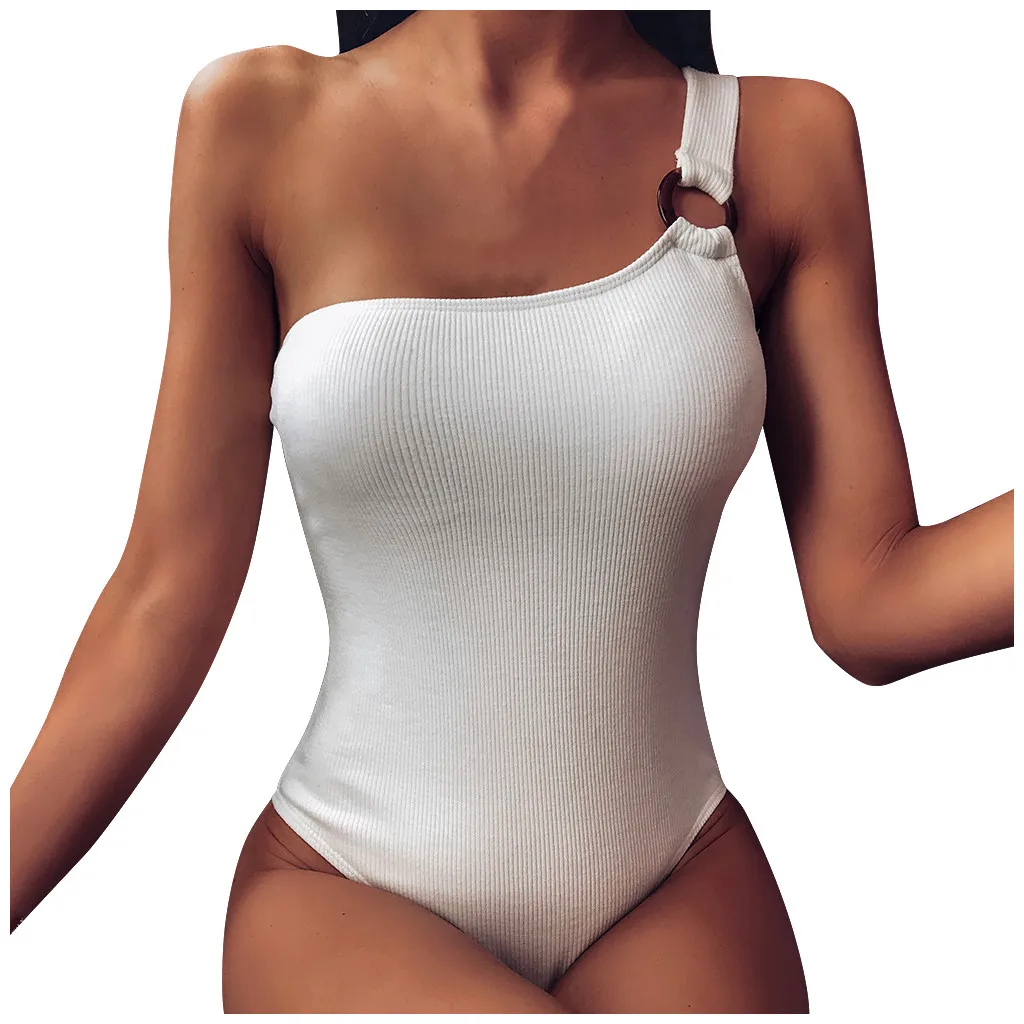 Женский купальник-бикини, топ на бретелях, 2020, сексуальный черный купальник на одно плечо, цельный женский купальник с высокой талией и эффектом пуш-ап