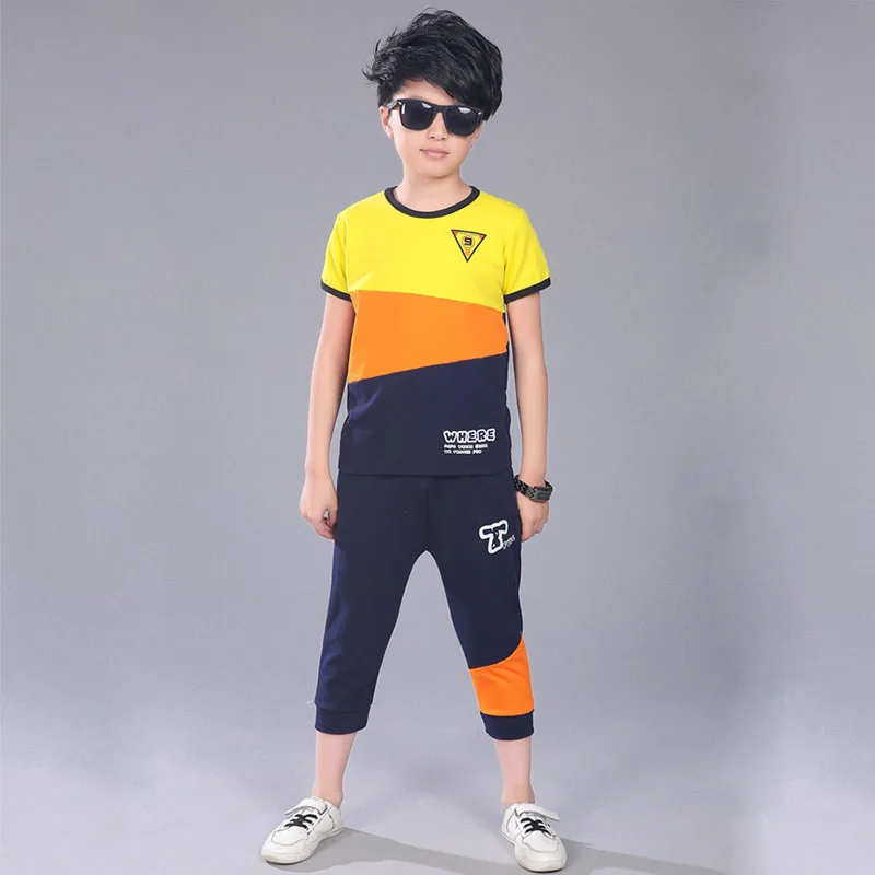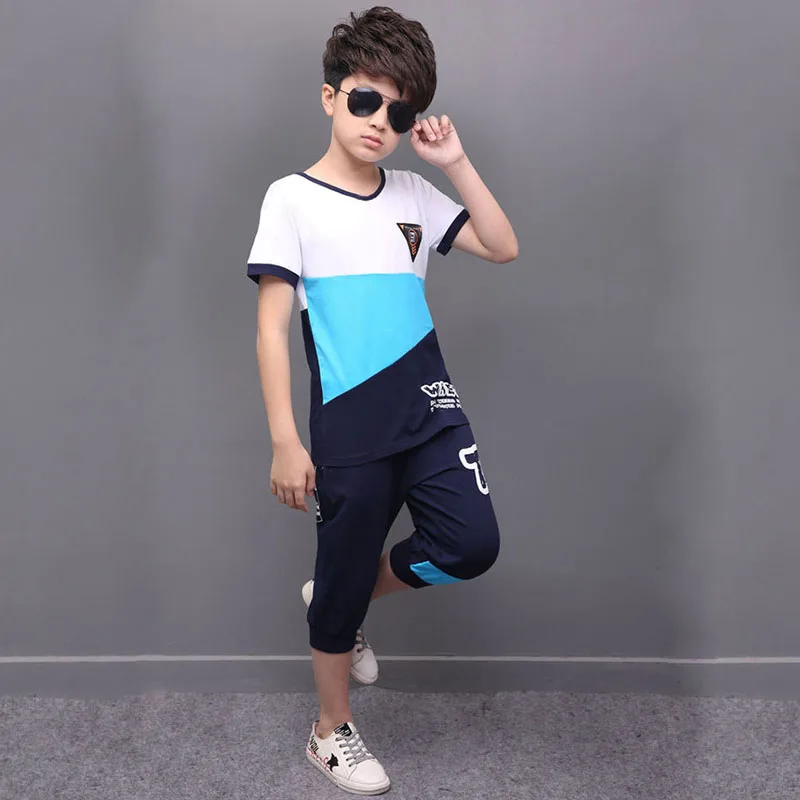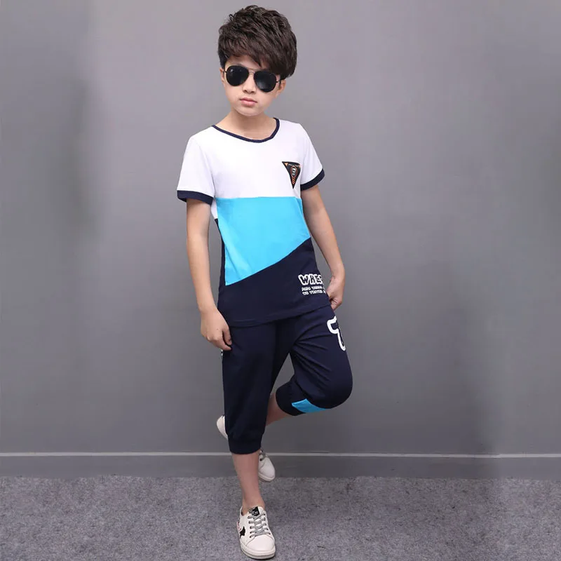 Комплект одежды модная толстовка с короткими рукавами и надписями для мальчиков, футболка пятиконечные штаны Качественная детская одежда