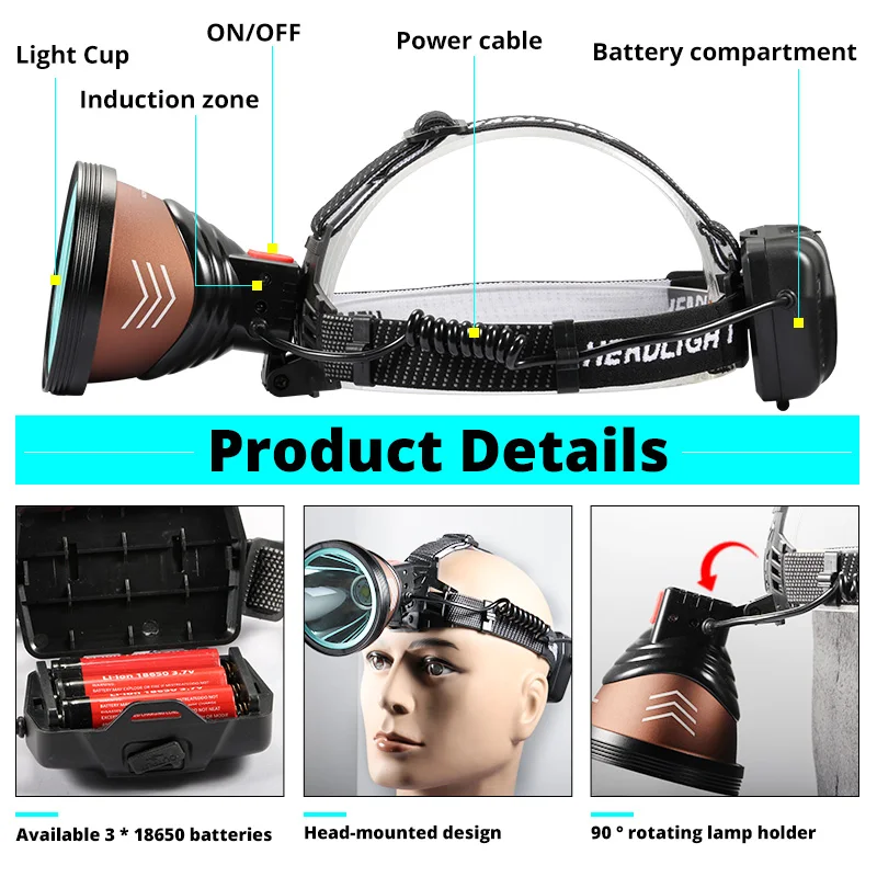 100% Фирменная Новинка и высокое качество; Супер яркий светодиодный налобный фонарь; Регулируемое основание для головной лампы, с наклоном вперед и назад; Налобный фонарь может быть понижен на 90 градусов. Держите вас в безопасности, когда вы выходите ночью; Водонепроницаемая конструкция. Bulit-in литиевая батарея Легко и удобно в использовании; С эластичным и регулируемым ремешком для шлема для установки лампы на голову; Подходит для кемпинга, охоты, скалолазания и активного отдыха;