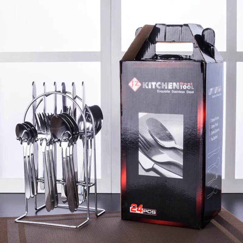 24 шт. набор посуды в западном стиле 410 столовые приборы из нержавеющей стали ложка нож вилочный комплект утолщенная Антикоррозийная твердая домашняя столовая посуда