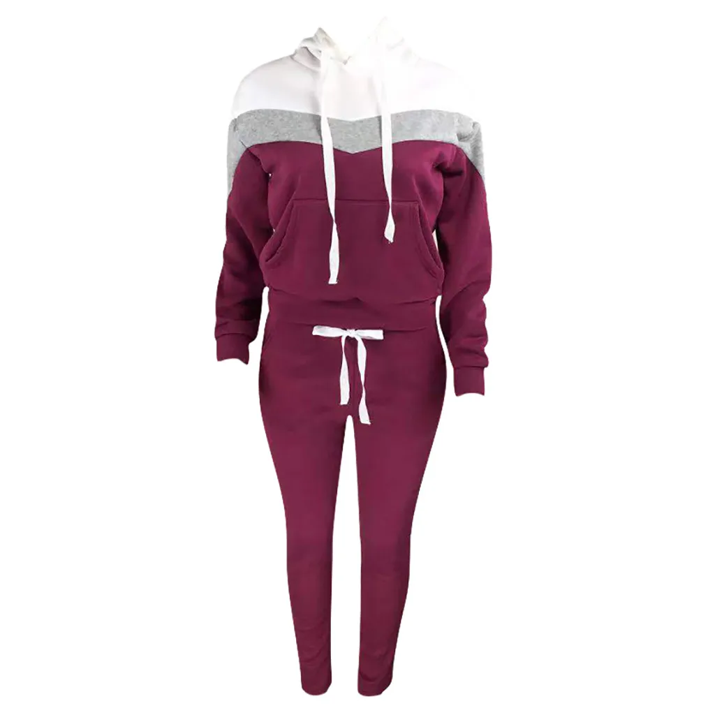 Модные женские длинные рукава и брюки сшитые цветные повседневные спортивные утолщенные