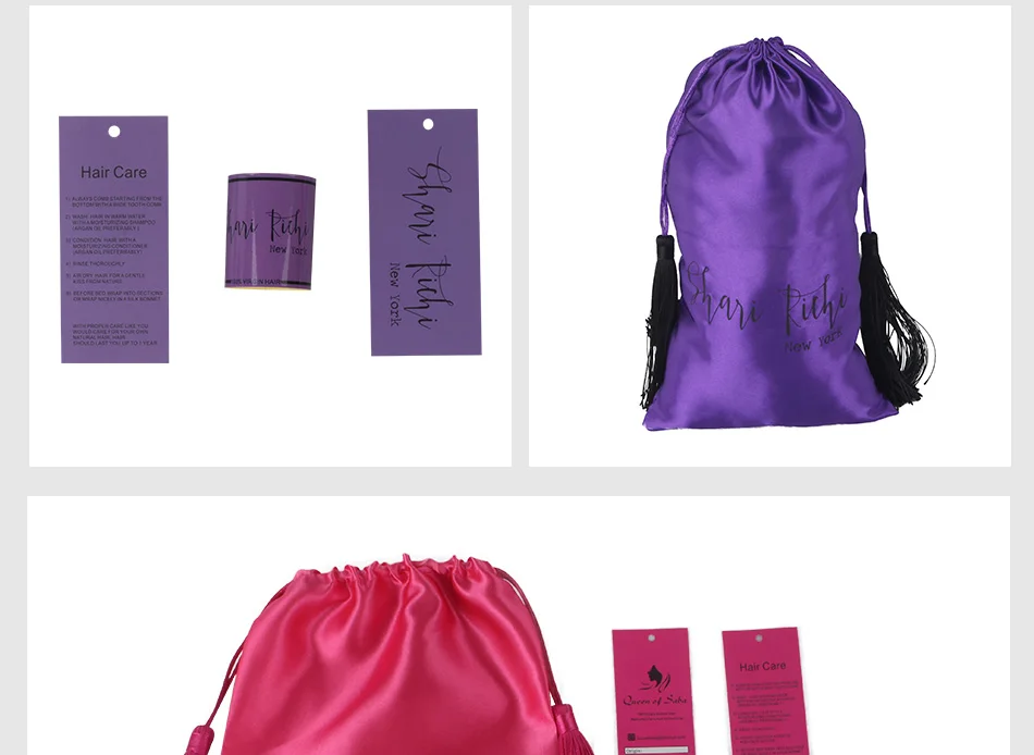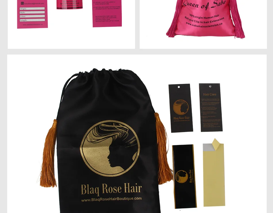 Наборы включают в себя: 200 шт. пряди для волос, 200 шт. бумажные бирки (300 ГСМ),50 шт. атласные мешки (18 см на 30 см, которые могут поместиться в 4 budles)