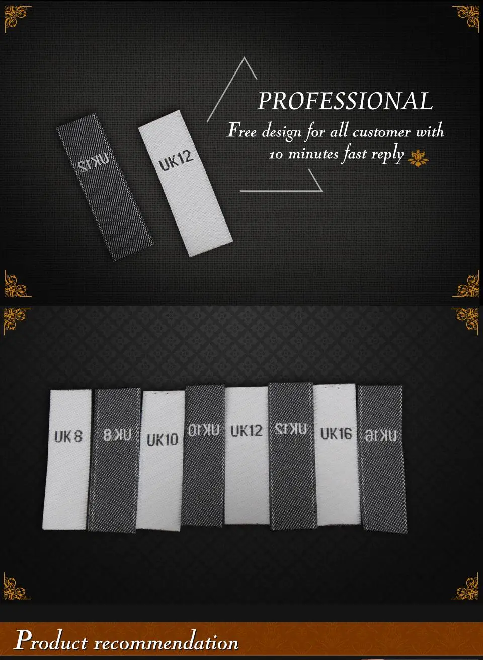 Тканый размер этикетки образец, как показано ниже: