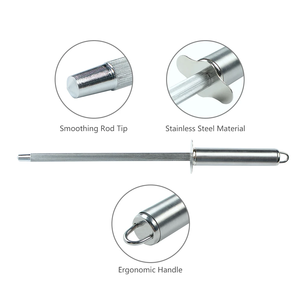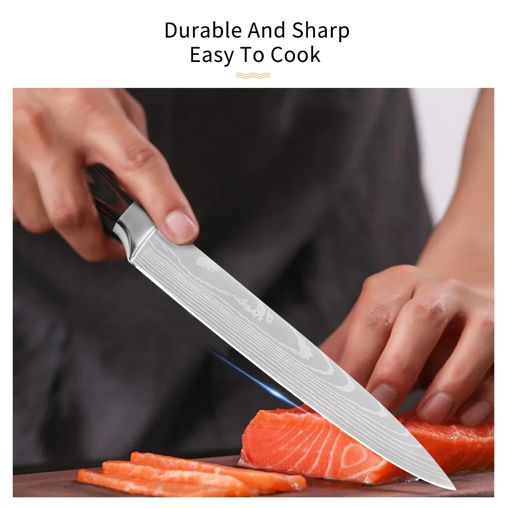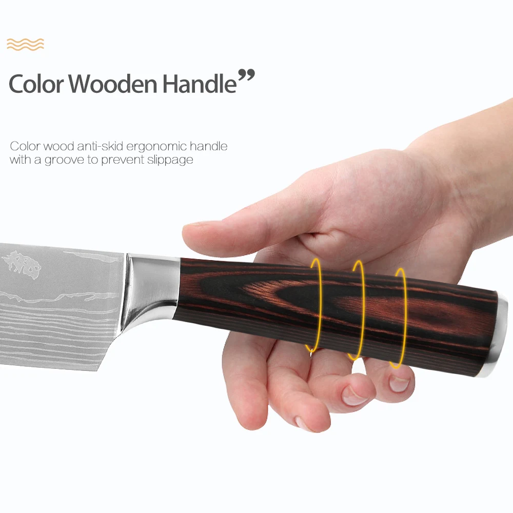 1. Многофункциональный нож: Порезы, кубики, кусочки, отбивки, а также отрезают мясо от костей. Он поставляется с шкалой твердости HRC( Rockwell) 52-58, что делает его одним из жестких ножей своего класса 2. Высокоуглеродистая Нержавеющая сталь 7cr17 лезвия: Сталь содержит углерод 0,6-0,75. Это делает его в два раза более твердым, чем другие ножи его класса, так как они содержат около 0.3% углерода 3. Эргономичная цветная деревянная ручка: Обтекаемая модная ручка для инженерной механики, подходящая для ладоней, более стабильная