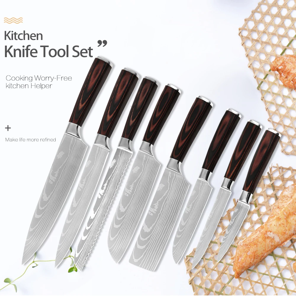 Набор ножей A: 1 × 8-дюймовый нож шеф-повара 1 × 8-дюймовый нож для хлеба 1 × 8-дюймовый Нож для нарезки 1 × 7-дюймовый нож сантоку 1 × 7-дюймовый разделочный нож 1 × 5,5-дюймовый нож для обвалки Универсальный нож 1 × 5 дюймов 1 × 5-дюймовый НОЖ сантоку 1 × 3,5 дюйма Фруктовый нож 1 × ножницы для куриных костей 1 × 12-карманная сумка для хранения ножей 1 × точилка для ножей 9 × ножны для ножей Набор ножей B: 1 × 8-дюймовый нож шеф-повара 1 × 8-дюймовый нож для хлеба 1 × 8-дюймовый Нож для нарезки 1 × 7-дюймовый нож сантоку 1 × 7-дюймовый разделочный нож 1 × 5,5-дюймовый нож для обвалки Универсальный нож 1 × 5 дюймов 1 × 5-дюймовый НОЖ сантоку 1 × 3,5 дюйма Фруктовый нож 1 × 12-карманная сумка для хранения ножей 9 × ножны для ножей Набор ножей C: 1 × 8-дюймовый нож шеф-повара 1 × 8-дюймовый нож для хлеба 1 × 8-дюймовый Нож для нарезки 1 × 7-дюймовый нож сантоку 1 × 7-дюймовый разделочный нож 1 × 5,5-дюймовый нож для обвалки Универсальный нож 1 × 5 дюймов 1 × 5-дюймовый НОЖ сантоку 1 × 3,5 дюйма Фруктовый нож 9 × ножны для ножей Набор ножей D: 1 × 8-дюймовый нож шеф-повара 1 × 8-дюймовый Нож для нарезки 1 × 7-дюймовый нож сантоку Универсальный нож 1 × 5 дюймов 1 × 5-дюймовый НОЖ сантоку 1 × 3,5 дюйма Фруктовый нож 1 × 8-карманная сумка для хранения ножей 6 × ножны для ножей Набор ножей E: 1 × 8-дюймовый нож шеф-повара 1 × 8-дюймовый нож для хлеба 1 × 8-дюймовый Нож для нарезки 1 × 7-дюймовый нож сантоку 1 × 7-дюймовый разделочный нож Универсальный нож 1 × 5 дюймов 1 × 5-дюймовый НОЖ сантоку 1 × 3,5 дюйма Фруктовый нож 1 × 8-карманная сумка для хранения ножей 8 × ножны для ножей