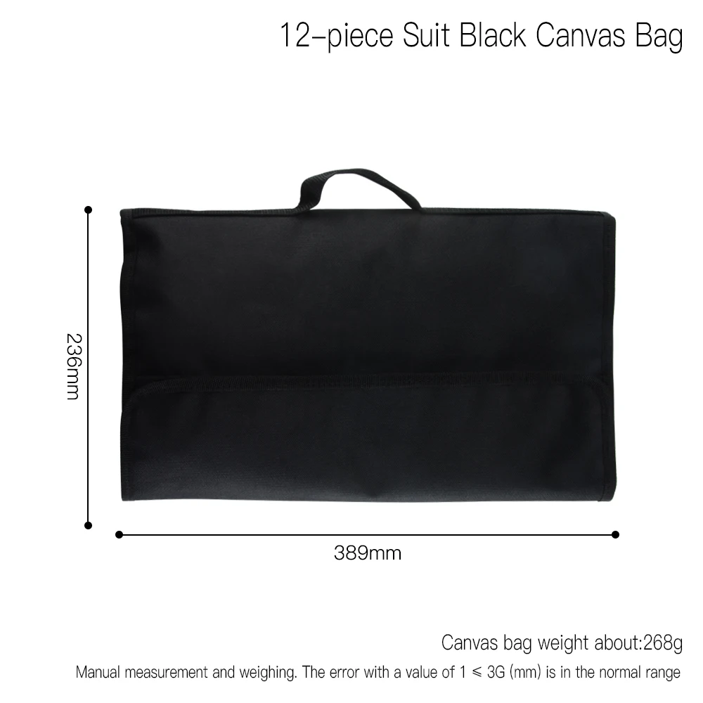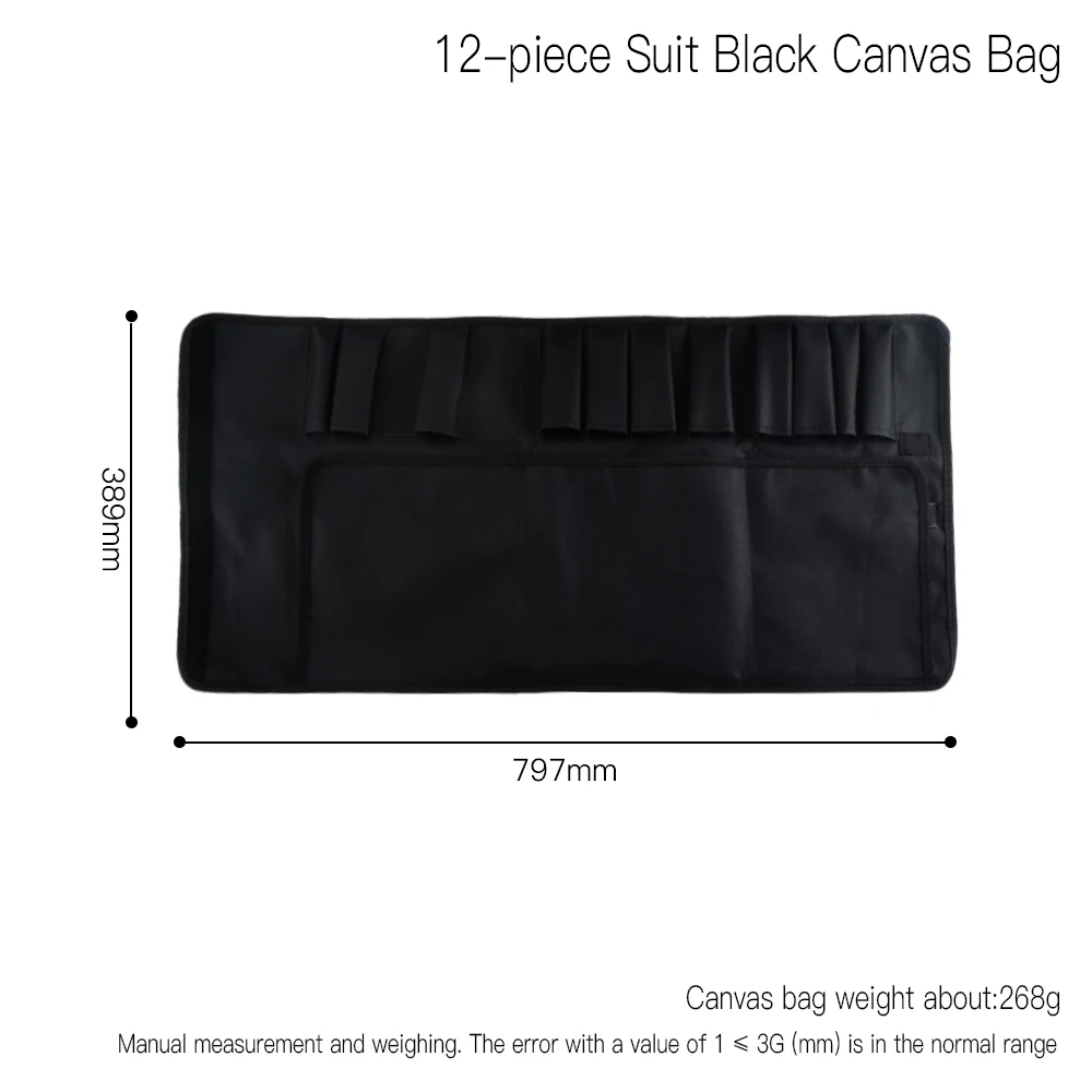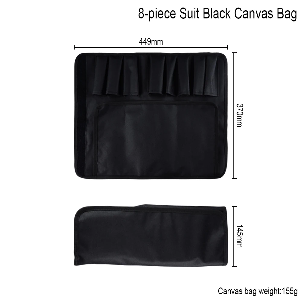 Материал сумки для ножей: водонепроницаемая нейлоновая ткань Сумка для хранения: 12 ножей Штанга для ножниц и точилок: нержавеющая сталь